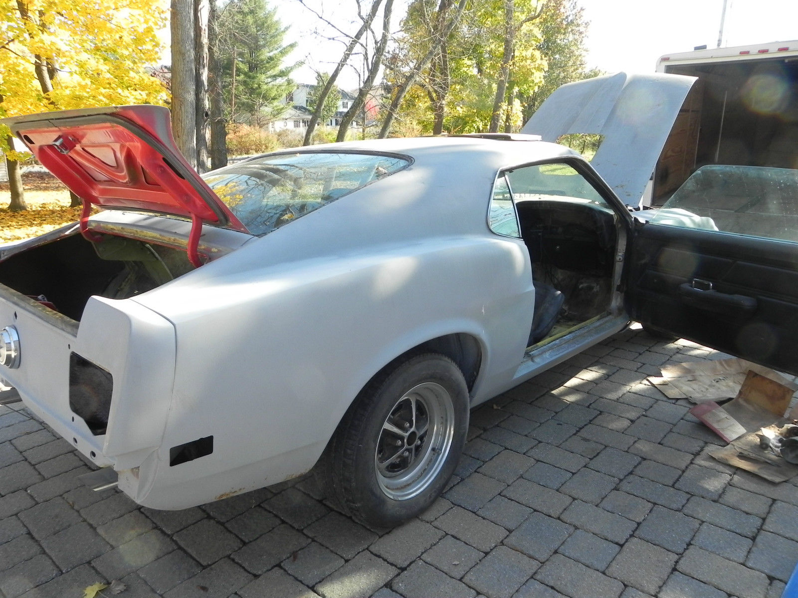 this is 1970 mustang. engine completely rebuilt. has a headers and intake on it with a holley. there r no miles on engine. professional rebuilt. runs great and shift great. nothing wrong with drive train. brakes work well. car start rt up and moves fine. need paint and interior reinstall. have pretty much all the interior parts. I do have the wood grain gauges and clock cluster that goes with the car. nbsp;as u can see someone butcher the dash pad. lutch is also new when did engine. there is no rot on this car. floor broads and torque boxes and frame rails in perfect shape. this car was a az car. u can scuff the underneath this car and prime it. it needs nothing. car was stripe all the way to bare metal. car has very little body work. don. have shaker. hood has lots of fill in it though. have started to install with orginal ac parts as u can see the lower half of the dash. have marti report. what u see is what u get
