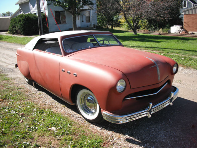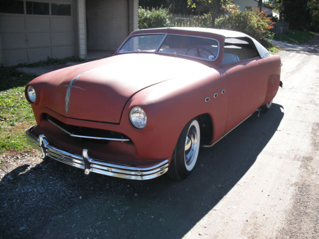 1949 Ford custom roadster with carson style removable vinyl top, reated from 2 door sedan, hopped windshield, haved smooth body in red primer, and builtbubble fender skirts, 9 plymouth ribbed bumpers, ustom white interior, ew radiator, etro sun tachometer and S.W. gauges just added, tereo and cd player in glove box, ood running original flathead V8 engine and 3 speed stick transmission with overdrive, igh output headlights and LED turn signals, hrome reverse rims and smoothie hubcaps on front, ood brakes and tires, arge pin stripes on hood and trunk lid by Voodoo Larry, renched headlights and rear antenna, ustom floating grille, ong lake pipes. 12 volt electrical system. the car does not have side windows, indshield wipers or mufflers. Very cool and fun to drive. If you are not really cool like m, nbsp;when you drive this car around you will be.