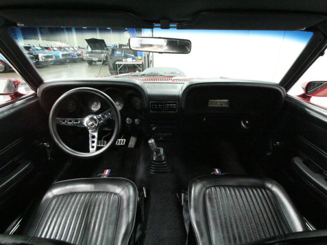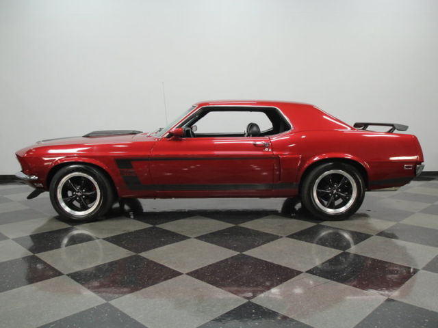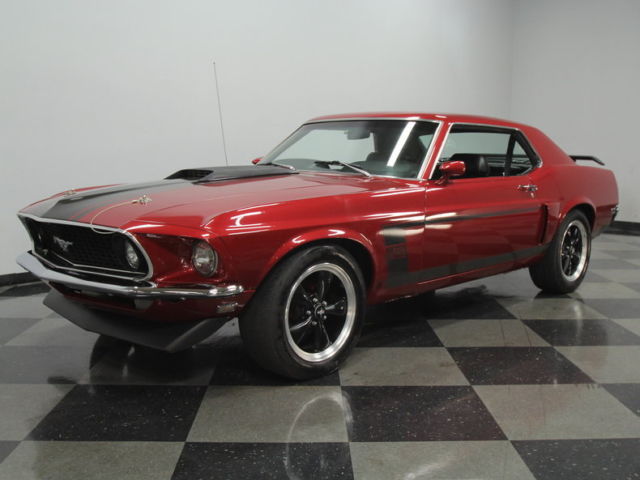 UPGRADED 302 V8, ORG WARNER 5 SPEED, EW SUSP, RONT PWR DISCS, XC COLOR, UN! It's time to be the "Boss" without having to pay the price. This 1969 Ford Mustang has beautiful bodylines and has been rebuilt to surpass the performance of even the special edition small-block Fords from back in the day. This pony car started out as a F-code hardtop coupe, ut it was destine for much more. That paint you can't take your eyes off of is a special shade called Candy Red Metallic. It has a huge shine, ut there's a hint of a darker side, hich works perfectly on this car. Not only does it contribute to the sinister attitude, ut also it nicely coordinates with black features like the hood scoop, oss-inspired c-strip down the sides, nd the tall rear spoiler. No one will mistake this one for any 'ol Mustang coming down the road thanks to nice aggressive touches up front like the air dam, T fog lights in the grille, nd hood pins. The whole package is completed with black Torq Thrust style wheels that include the Mustang pony centercaps. The forceful attitude continues with an all-black interior. From the door panels, o the seats, o the dash, verything in this Mustang looks like midnight. We'd mention the new black carpets, oo, ut they have a cool pony emblem in them to add a dash of color. This is truly setup for the driver with a grippy small-diameter sports steering wheel for the left hand (power steering) and a performance shifter for the right one. But passengers won't feel like an afterthought thanks to the pair of comfy bucket seats up front, nd an AM/FM/CD stereo for everyone to enjoy modern tunes. Of course we won't blame anyone for just wanting to roll down the windows and listen to the rumble of the dual exhaust instead. What really gives this car its attitude is under the hood. While it started life with a 302 cubic-inch V8, he one currently in the engine bay comes from a much younger '93 Mustang GT. This was then given some serous performance upgrades like a performance air cleaner, delbrock carburetor, delbrock intake, ord Racing valve covers, SD coil, nd MSD Street Fire ignition. Now it has the kind of performance that will let you play with the factory Boss 302s. In fact, ou've even got some advantages over them, ike the extra gear that comes in this Mustang's upgraded Borg-Warner T5 five-speed manual transmission. The handling is also good with new rear leaf springs as well as new upper and lower control arms with new rubber seals up front. Plus, here are disc brakes up front, nd grippy Goodyear Eagle RS-A tires at all four corners for total control. This is not a Boss 302... it's better. This Mustang has more modern performance features for a lot less cash. But you're still going to turn the same amount of heads, r probably more, riving this stunner. |