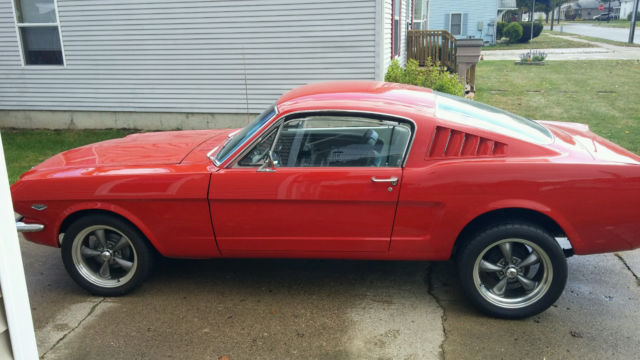 Beautiful 1965 Mustang Fastback. It has newblack and white leather ponyinterior, rofessionally finished. Body is rust free and in great shape. The previous owner informed me that the fenders have all been replaced. The 289 is not original to the car but sounds and runs great. It has a GT radiator to solve that notorious over heating issue that mustangs have.It is a 4 speed manual transmission. The previous owner restored this beautiful car and made it look like a kick ass muscle car with some fat rear tires. Love it! It does not have power brakes or power steering. Just never got around to converting them. The mileage is not accurate.I wish I was a mechanic but I just don't have that background but what I do know is that this car is a head turner for sure! This car represents American car artistry and will stay in this country. I will not ship overseas. The buyer is responsible for shipping. $500 deposit must be made within 5 days of the completed auction. Also, his car is located in Michigan and it is damn cold outside so I don't have any undercarriage pics but will provide them when it gets somewhat reasonable to serious buyers. Sorry and thanks.