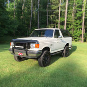 1991 Ford Bronco with 141,000 miles. Originally a Maryland truck, indsor motor with auto tranny. Very little rust - see pictures. Hasnt seen salt for 10 years. CB radio included. Interior is clean. Lots of extra parts included. Has soft top and hard top. Three sets of tires on rims. Pioneer stereo system. New installed parts include: full gibson exhaust system, arn hubs, otors, ads, alipers, rums, hoes, heel cylinders, ront brake lines, adiator hoses, alogen headlights, og lights, oof lights, uel tank, uel pump, uel filter, uel lines, alve cover gaskets, ap sensor and EGR valve.