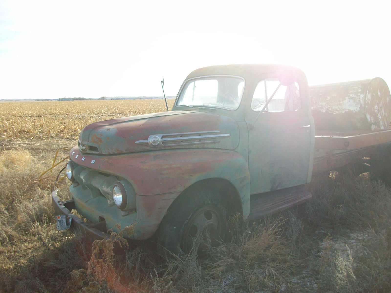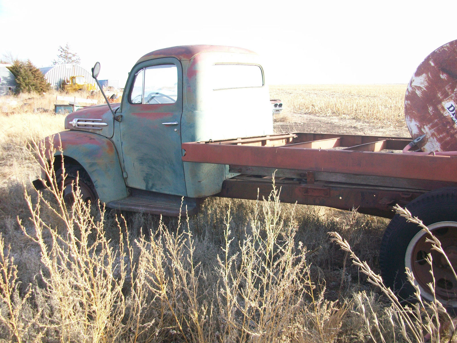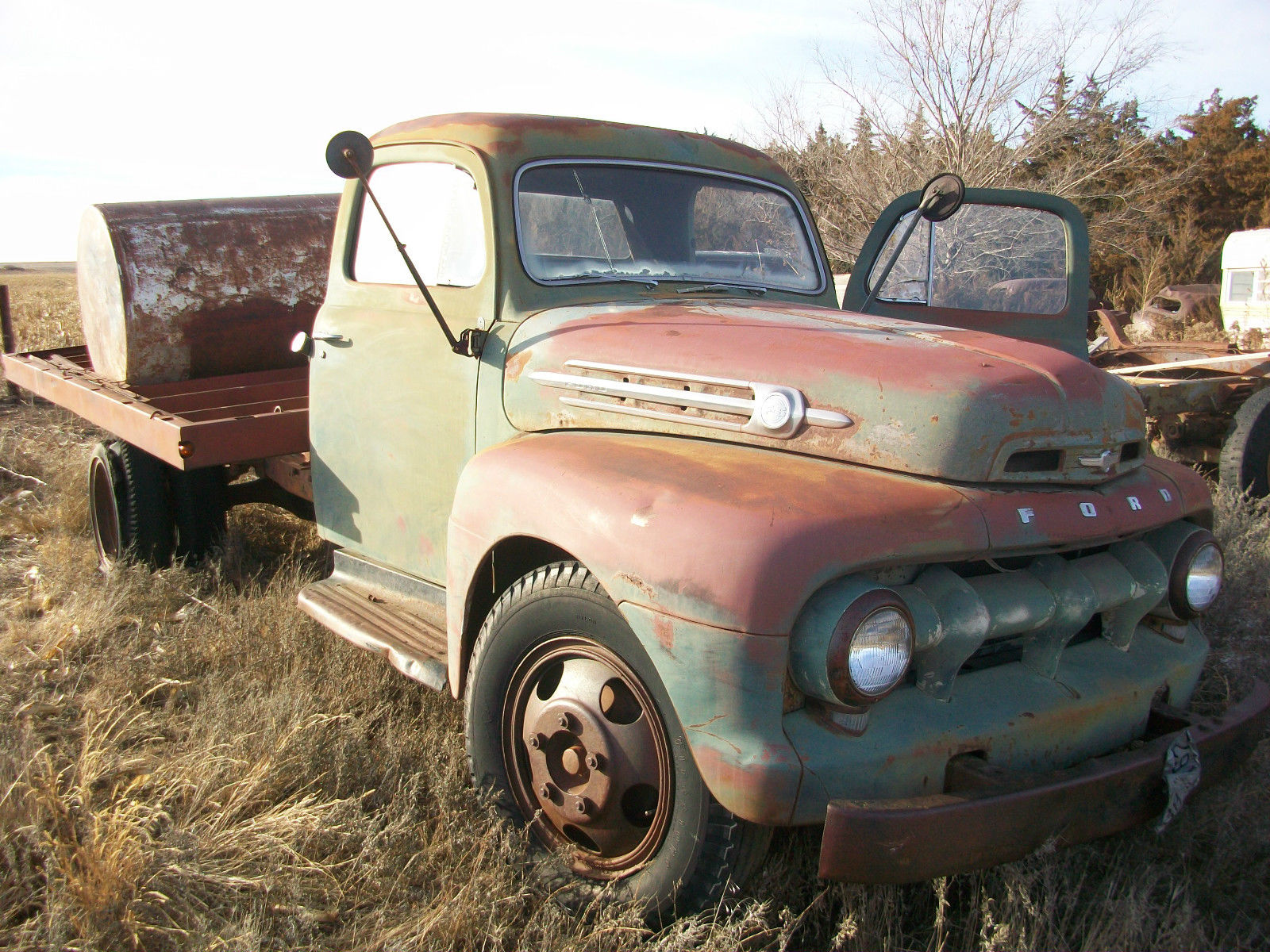 | 1952 Ford F6 . body is in good condition. Motor ran real good last time it ran ((several years back)) Hoist works good. The left front tire is bad and won't hold air. I didn't notice any rust on the cab. fenders. running boards. ect. I would like to have it paid in full within the 7 days and I can allow a reasonable amount of time for you to pick it up or have it shipped. |
