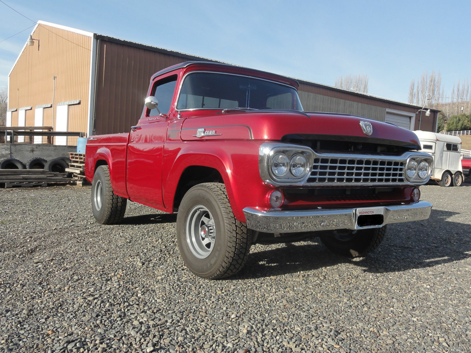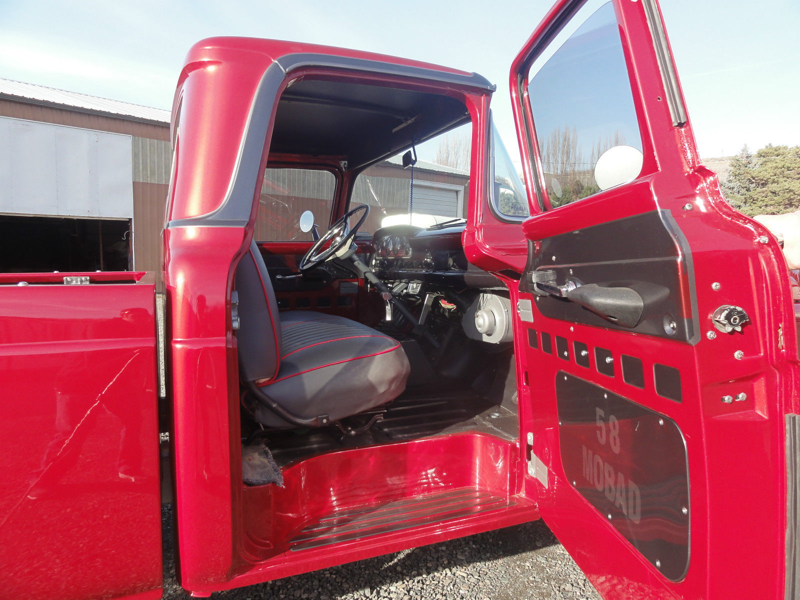 | For sale is My 58 MOBAD pickup. Time to start another project. specs are as followed. -1968 390 CI w/ custom cut cam. 650 cfm carb. . 390 gt cast exhaust headers ceramic coated - Euro head lights for better night vision -C-6 Automatic transmission w/ stall conversion. tourqe convetor to match cam drop & loop. shift kit - 370 to 1 rear gear diff. posi trac. disc brakes - Front disc brakes - Custom Doc's Dolphin gauges with tach - No-wing one piece power windows - Tinted rear slider window - Custom flow throw tail gate - Custom blue dot triple tail lights - In bed tie downs - Paint is Lesanol based and clear Orathane - All brakes. inner fenders. wheels. custom flow throw down force tail gate. in bed tie downs. steer coloum matching colors. Color is Orcgard rite hammer gray - Standard leaf spring suspension. extra leaf is front for big block. factory extra heavy over laod springs in rear. 44 total springs under truck - Manual streering box from a 2 ton saganoff steering box - Interior is original custom cab bench seat. Ford Truck logo stitching layed in headliner and carpet. arm rests. both doors and sun visor - Tires are 31 x 10. 50 x 15lt front 8inch wide. rear is 33 x 12. 50 x 15lt 10 inches wide - 3. 00 miles - Clear title in hand contact Marty Ray @ 509-945-8666 |
