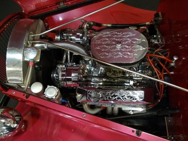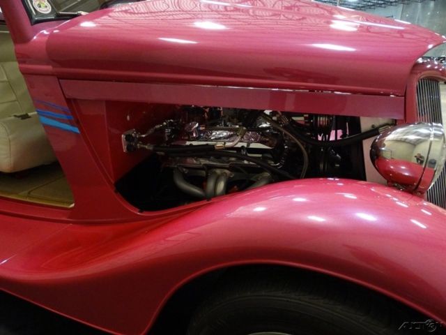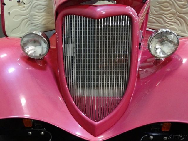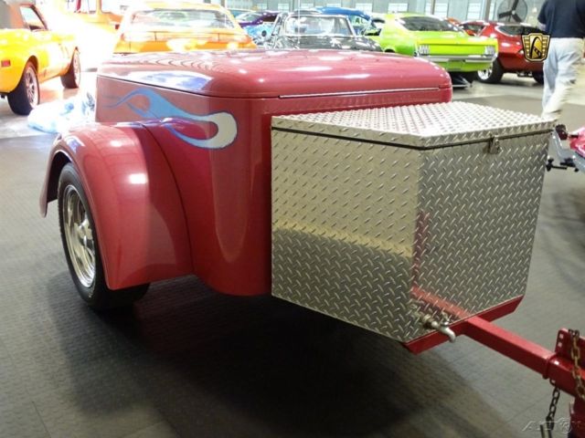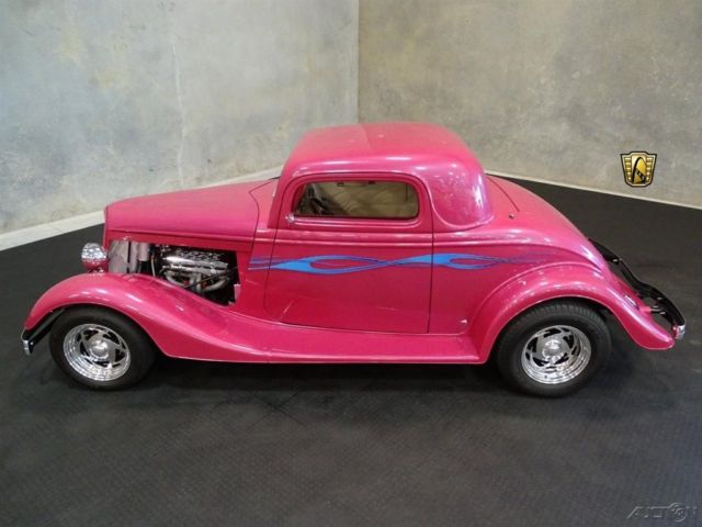 | 1934 Ford Coupe with matching trailer for sale in our Tampa Showroom. This beautiful street rod is painted in a stunning Magenta Metallic with shaved handles custom flames and aluminum alloy wheels. Having the hood sides open shows of the gem of the car the 327 Chevrolet small block that is covered in chrome! Under the hood you have an Edelbrock 4 barrel carburetor with electric choke sitting on a chrome Edelbrock intake chrome flame valve covers and spark plug looms ceramic coated shorty headers aluminum radiator with electric fans billet radiator overflow chrome A/C compressor and alternator and billet oil and transmission dipsticks finish it all off. Inside you are greeted by a custom interior with flames on the door panels and headliner vinyl seats with seat belts white face gauges set into the painted dash and a Lokar shifter on the floor. A Mustang II front end with disc brakes and power rack and pinion steering provide the steering and stopping power for this 34 Ford. Options include A/C power steering power windows power brakes seat belts vinyl interior tilt wheel radial tires and aluminum alloy wheels. The 327 CID V8 engine runs to a 700R4 automatic transmission which is great for cruising and it puts the power to the pavement through a Ford 8â? rear end. Drive the car alone or if you need more storage room you have a nice little matching trailer which contains the car cover and gives you room for luggage or your chairs for the car show. With only 7889 miles since this beauty was completed it has years and plenty of miles of enjoyment left for the next owner. This 34 Ford coupe is a fiberglass body so no worries of rust with this classic! The tires have only 2000 miles on them and this car gets very reasonable fuel economy for those long cruises. Located in our Tampa Showroom this 1934 Ford Coupe for sale can be seen in greater detail including HD pictures and videos at www.GatewayClassicCars.com. For additional information please call 813-645-6200 or email Tampa@GatewayClassicCars.com |