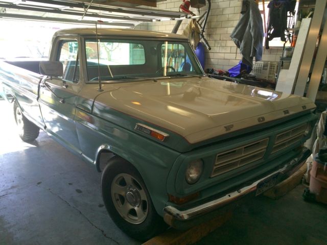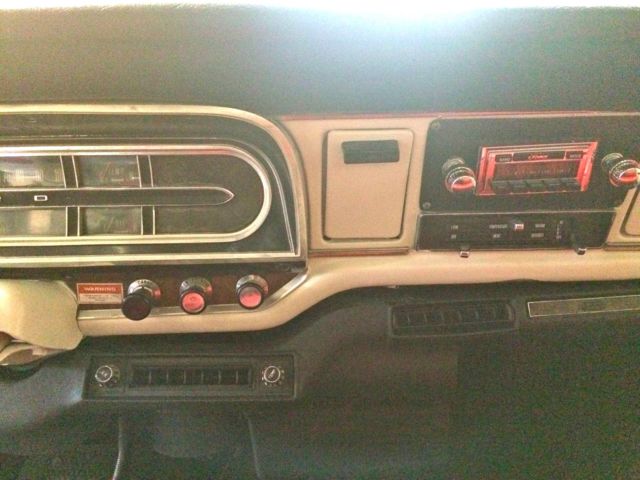 1972 F-100 Ranger XLT with a 429 big block and C6 automatic transmission. 2wd and 88,000 miles. It is a good solid truck that spent most of its life in Pinedale, yoming (very clean). This model does have the factory air conditioning (needs recharged). Brand new dual exhaust, ew rebuilt cylinder heads, ew gaskets, ew Holley 600 carb, ew plugs, ll new belts, ew front suspension, ivot bushing stabilizer bushings, ie rod ends, ing pins, ig block springs, heel seals, rakes, nd much more. Interior was re-done with nice vinyl, ew dash, ew carpets, ew stereo (not hooked up), loor matts, tc. Exterior- new spray two tone with detailing stripes. It is a "good" paint job, ot "great". There are a few dents and dings throughout, ut overall it is pretty solid body. It has a replaced hood. Overall this truck is in great condition. It is super smooth and rides very nicely. No rattles. It gets lots of attention whenever we drive it. |