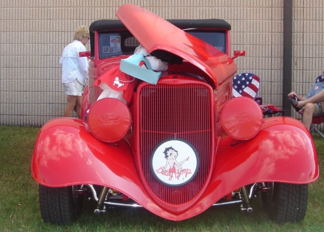 1933 Ford Victoria Phaeton Built in 1990 by Tyson Ford of Vienna Virginia. This Street Rod was the show car for the dealership.The bright red paint is still flawless, verything else is chrome. Rear tires Bridgestone Eagar P255/70R15 108T , ront tires Bridgestone Eagar P195/65R14-88H The parts for the car cost $54,646 to build in the early 1990. The hundreds of hours of labor were written off at the dealership. The receipts and manuals are included My wife named her Betty Boop and together we raised 10’s of thousands for charitable causes. The car is a show stopper and won many awards locally and at street rod Nationals. She handles and cruises like a dream. This is not just a pretty ca, the best thrill is at 70 mph. She has a beautifully purring sound and handles perfectly. The reason I am selling her We have not shown her for 10 year, have sold my storage garage and my hauling trailer. We have been together for many years and it breaks my heart to let her go. Their is a small transmission fluid lea, I think is coming from the front transmission cooler. |