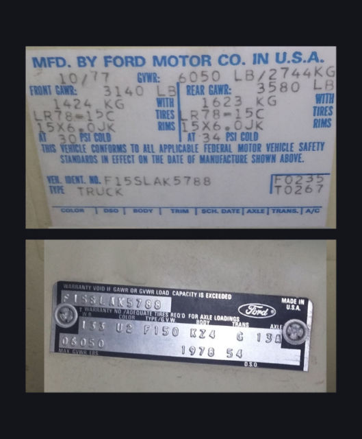 This 1978 Ford F-150 Ranger Lariat Styleside is a 2 owner, early original bit of History-- right down to its own, uthentic1978 Owners manual. It is a Rwd, x4 Long box with the Deluxe Tu-Tone Paint package, tep-up rear chrome bumper, nd chrome Grill options. The Truck was purchased over 35 years ago by my Father-in- law, rom a friend of his, ho had purchased it new and sold it soon after.