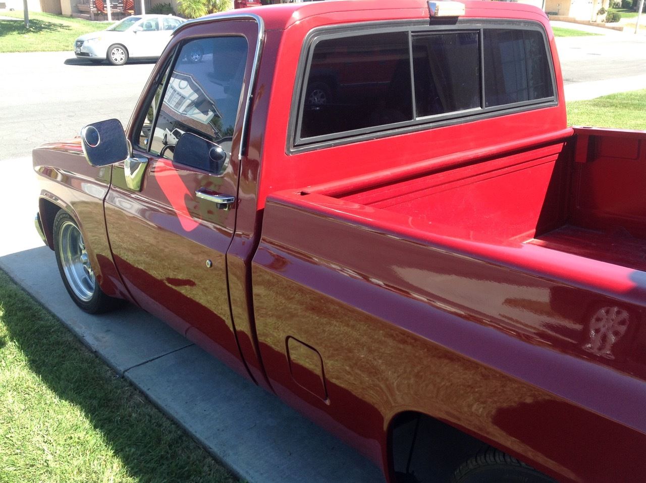 | Clean title and California truck since new. Gorgeous red paint. american racing aluminum rims. professionally lowered. interior in perfect condition. 305 5. 0L V8 TBI engine. automatic transmission. a/c. manual locks and window cranks and tinted windows. This classic truck is the rare combo of the last year of the beautiful square boxy design and short bed combined with the fuel injected V8. Miles: 130. 23 (odometer reads 30523) |