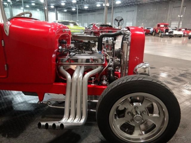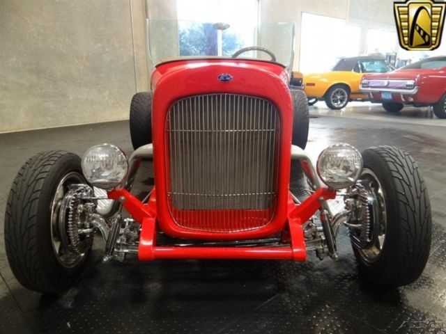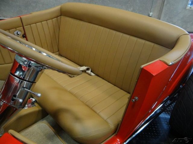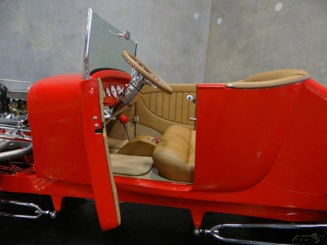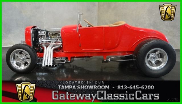 | Up for sale in our Tampa showroom is a super clean 1927 Ford Roadster. The power plant for this sporty little 1927 Roadster is a very well built Five Star Racing Chevy 383 cubic inch stroker V8 making 360 horsepower linked to a smooth shifting Chevy Turbo 350 transmission both sporting a little under 800 miles since being built. This little 1927 Ford Roadster is a full fiberglass body with steel reinforcements and a recessed firewall with Hushmat insulation throughout the body and trunk. The exterior color on this roadster is a viper red base coat and clear coat with the frame and bottom of the car both being painted cut and buffed like the body. The rear end on this sporty little roadster is an 8 inch Ford with positive traction and 3:08 gear ratio which makes for a very entertaining drive. The interior is a complete custom job from Mr. Bills Upholstery with tan vinyl and carpet cab and trunk and the tan color really brings out the Viper red paint on the body and gives it a very rich look. This 1927 Roadster has a long list of quality parts and restoration work and can be yours with one simple phone call or email. Options include: tilt wheel seat belts vinyl interior aluminum alloy Halibrand wheels wrapped in Mickey Thompson radial tires. To see more HD pictures and video of this 1927 Ford Roadster please visit GatewayClassicCars.com. For more information or to schedule an appointment to come and view this roadster in person please call the Tampa showroom at (813)645-6200 or email us directly at Tampa@GatewayClassicCars.com. |