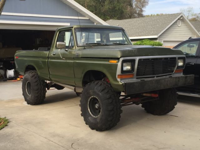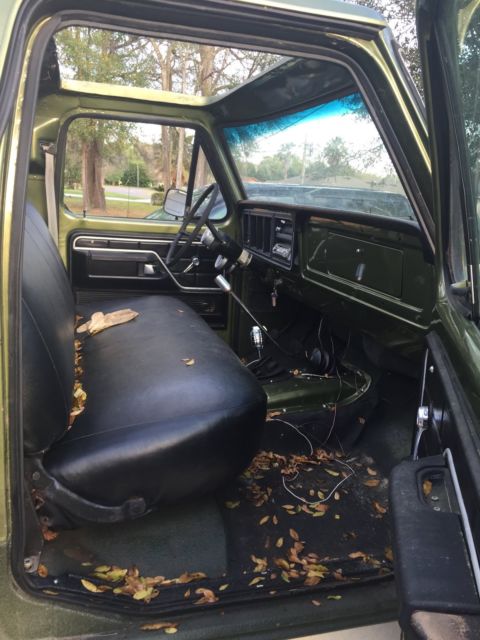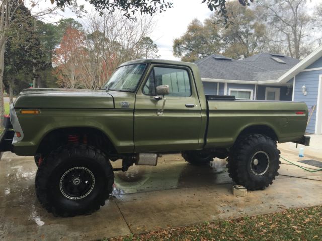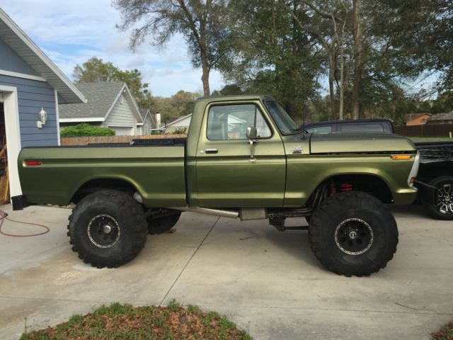 Previous owner started a frame off restoration several years ago. It has a fresh rebuilt 460, bored .030 over, with flat top pistons. Also has DOVE heads, roller rockers, Edlebrock intake, 750 Holley carb and HEI distributor. Truck also has fenderwell exit headers andmagnaflow mufflers.Also has new aluminum radiator w/ electric fan and thermostat controller. It has all new Autometer gauges. The trucks runs and drives. The transmission is a granny low 4 speed with a 205 transfer case. Front axle is a Dana 44 and the rear is a Ford 9''. The truck rides on 39.5-15 x 15 Super Swampers with nearly new tread, and 15x10 aluminum wheels. The brakes all work and I have recently replaced themaster cylinder, rear brake shoes andwheel cylinders. The frame was sand blasted and epoxy painted, and hasall new brake lines,The suspension isall new, with 6'' lift coils and new leaf springs. The truck has a new fuel tank and fuel lines. The body and paint on the truck still look pretty good. The previous owner did cut a large hole in the roof, ( see interior pic) which has caused rust damage. THE CAB WILL NEED A NEW ROOF if you are going to restore it. All of the work done by previous owner is 4-5 years old, but the truck sat under canopy, un touched. The truck is very solid, and would be a great candidate for restoration. Disregard the goofy exhaust pipe in the first pic, I was screwing with my wife about putting sidepipes on the truck and keeping it. (you can have them if you buy the truck) Please contact me if you have any questions, leave your phone number and I will call you. Truck is for sale locally. |