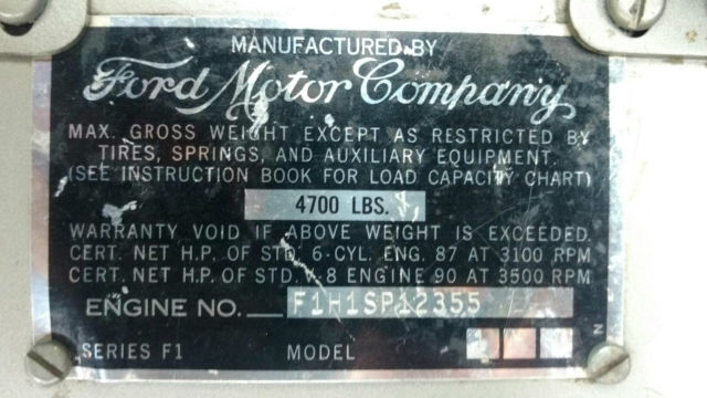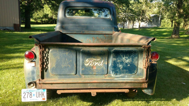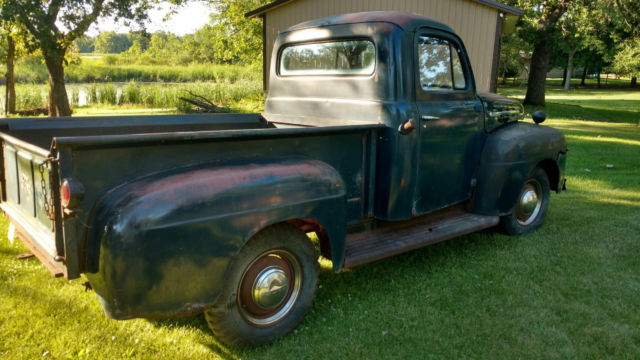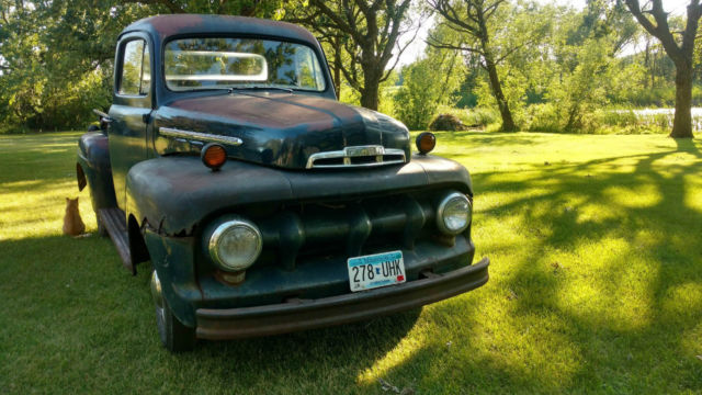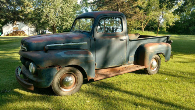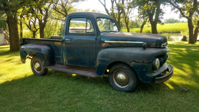 Offering a1951 Ford F1 Pickup With Title.This truck is in good, original condition. It is very complete.The motor turns over but it was never stuck & it needs a valve job. The cylinders look good. When I disassembled the motor, there was antifreeze & oil in the engine.The truck rolls & steers with ease but needs brakes. The truck only has minor dents. All the glass is complete but the left two door glass have cracks. Both windows roll up & down with ease.I totally scrubbed & cleaned the interior & disassembled & cleaned the heater.Both doors & hood open, close & latch. The tailgate is very straight & solid. The bed floor does need wood but the strips & hardware are intact.The battery tray & left inner fender are rusted from the battery acid. The truck includes replacement parts.It has a lot of the original blue paint.*** This is for local pickup only. You are responsible for having it shipped. Please email with any questions. Feedback will be left on all sales and I would appreciate it you did the same. Please visit my store, Pietig’s Vintage, to see my other items.