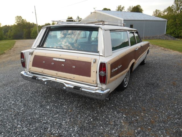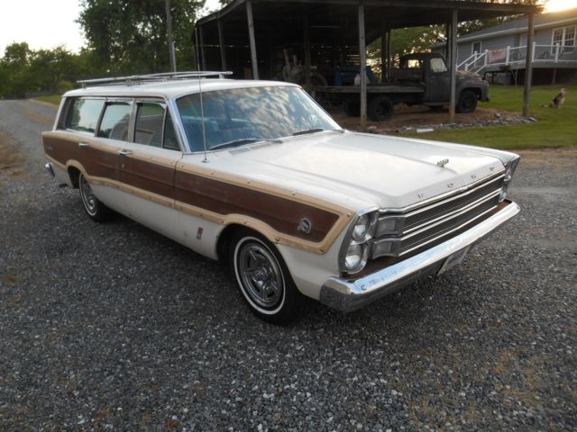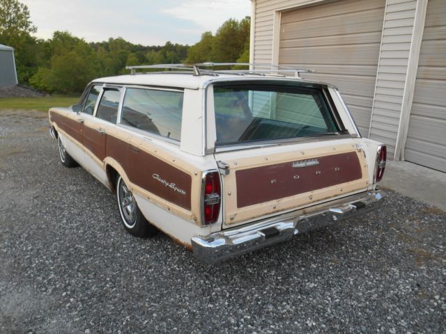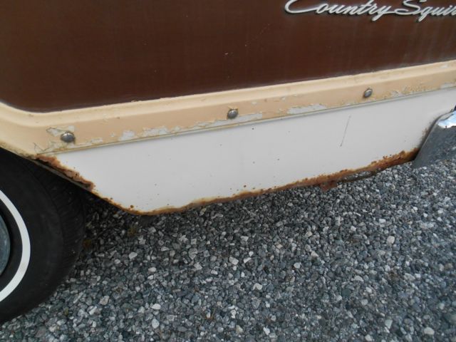Take a look at my 1966 Ford Country Squire Wagon. It is the 9 passenger style with the center facing seats in the rear. It also features Ford's "magic" gate which opens like a door as well as a tailgate. This wagon is equipped with the "Z" code 390 4V engine, green dot cruise-o-matic transmission, power steering, power brakes, and factory air conditioning. This car has never been hit and has it's original paint on every square inch. Someone has brush painted the mouldings, go figure. I was told that the engine was stolen from this car in the late '70's and it st sat outside for the next 30 years. It was purchased by a man who had a rebuilt "Z" code Galaxie engine and installed. The engine was never completely wired and plumbed, that how I got the car. That was the explanation for the low mileage on the odometer, and the weathered condition of the body. I was skeptical, however, after inspecting the original suspension components and driving the car after completion, I think the story is true and the miles are very low. The car drives excellent with no squeaks, rattles, shimmies, or odd vibrations. The rust is limited to what you see in the photos. The floors, tailgate, and frame are all solid. I installed completely new brake system, including booster, all new single exhaust, as it came with, new tires, new battery, new alternator, new carpet, and new headliner. The 7 Litre hubcaps are the originals. You have to drive this car to believe the story, but I would trust it to go anywhere. I get a lot of positive attention in this car and it is a very easy cosmetic restoration at this point. All the seats and door panels are original. I am selling this car as is. It is the responsibility of the buyer to transport it to it's new home. I do have photos of the bottom of the car, but I do ask that you be seriously considering buying the car before you request them. The radio is not currently working. I also installed new halogen headlights. Thanks for looking and I will be happy to answer any questions you may have.