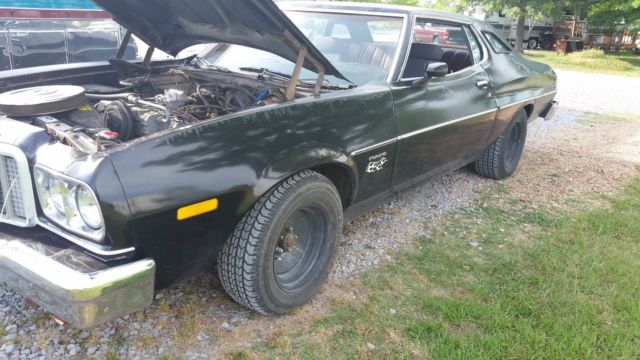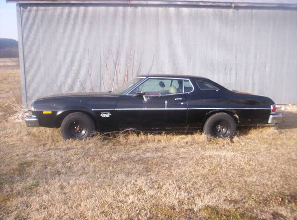 for sale is my 1976 Ford Torino the bodies in pretty good shape just a couple little rust spots the interior front seats are from a Mustang, and I have a brand new sports Dash to go in it there's no headliner or carpet starts and runs GREAT needs a tune-up, brand new carburetor alternator fuel pump gas tank and a new set of RIMS 2-15x8 and 2-15x7 and a few other things it's well worth the money...... please look at all pictures before bidding and please only cashier's check or money order cash upon pickup the buyer is responsible for any arrangement of pick-up or delivery the car is sold as is thanks for looking PLEASE SERIOUS BIDDERS ONLY PLEASE PLEASE PAY 500 DEPOSIT AT IN OF AUCTION