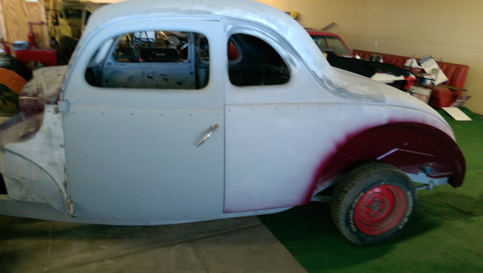 | NICE 40 FORD COUPE BODY WITH DOORS AND DECK LID . BODY SITTING ON A GOOD GINNY FORD FRAME . HAS BITCHIN FIRE WALL AND FLOORS . COMES WITH A GOOD TITLE. PRICED RIGHT . REPO WITH OUT FRAME AND TITLE 15K PLUS FREIGHT. CALL FOR INFO. 316-393-0334 |