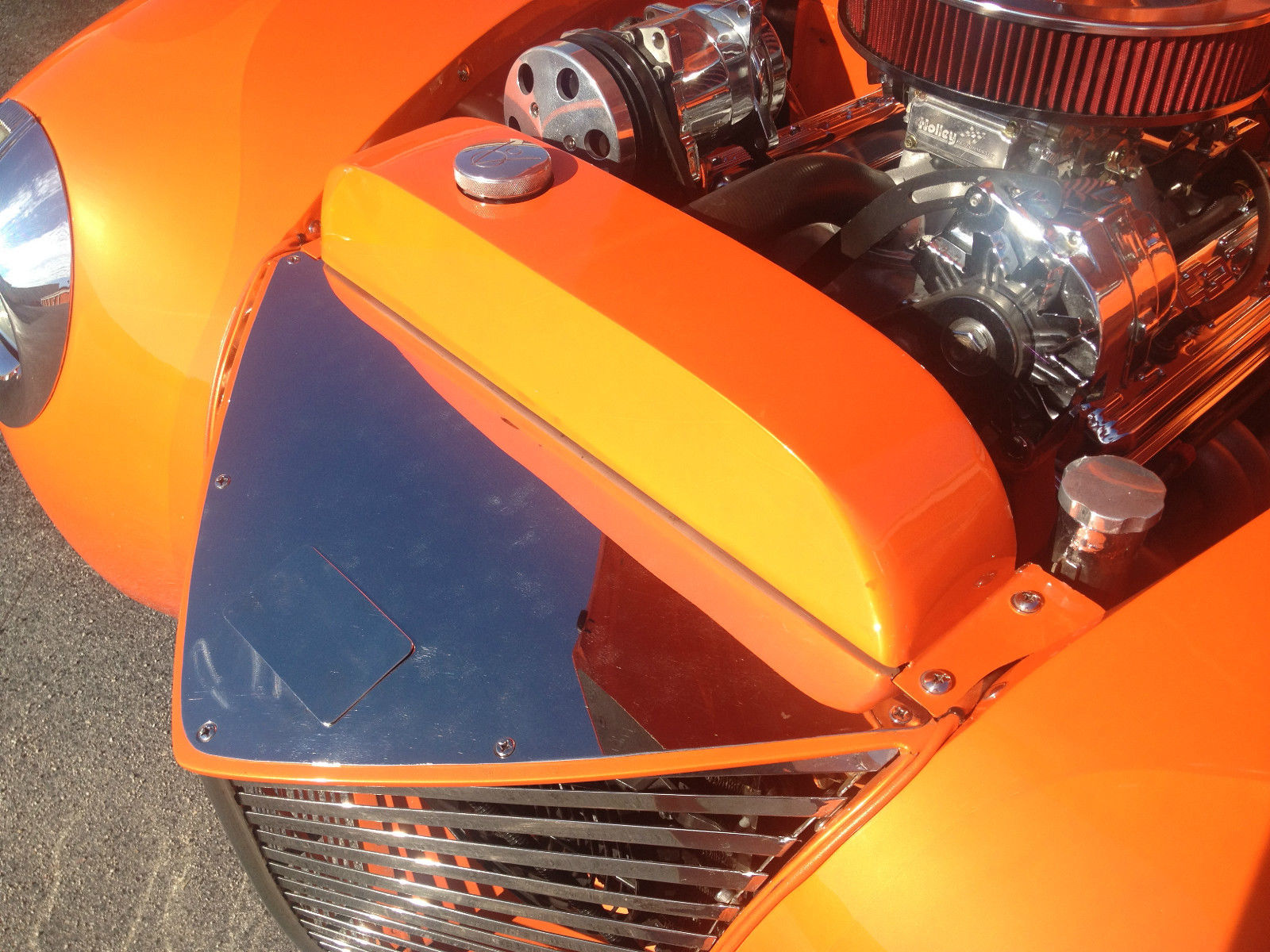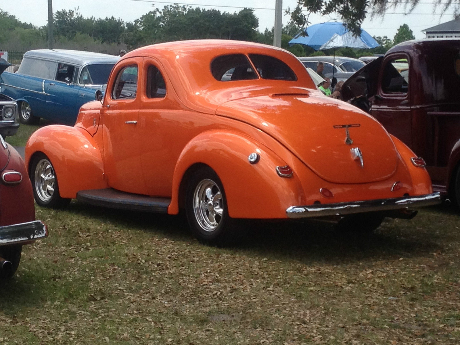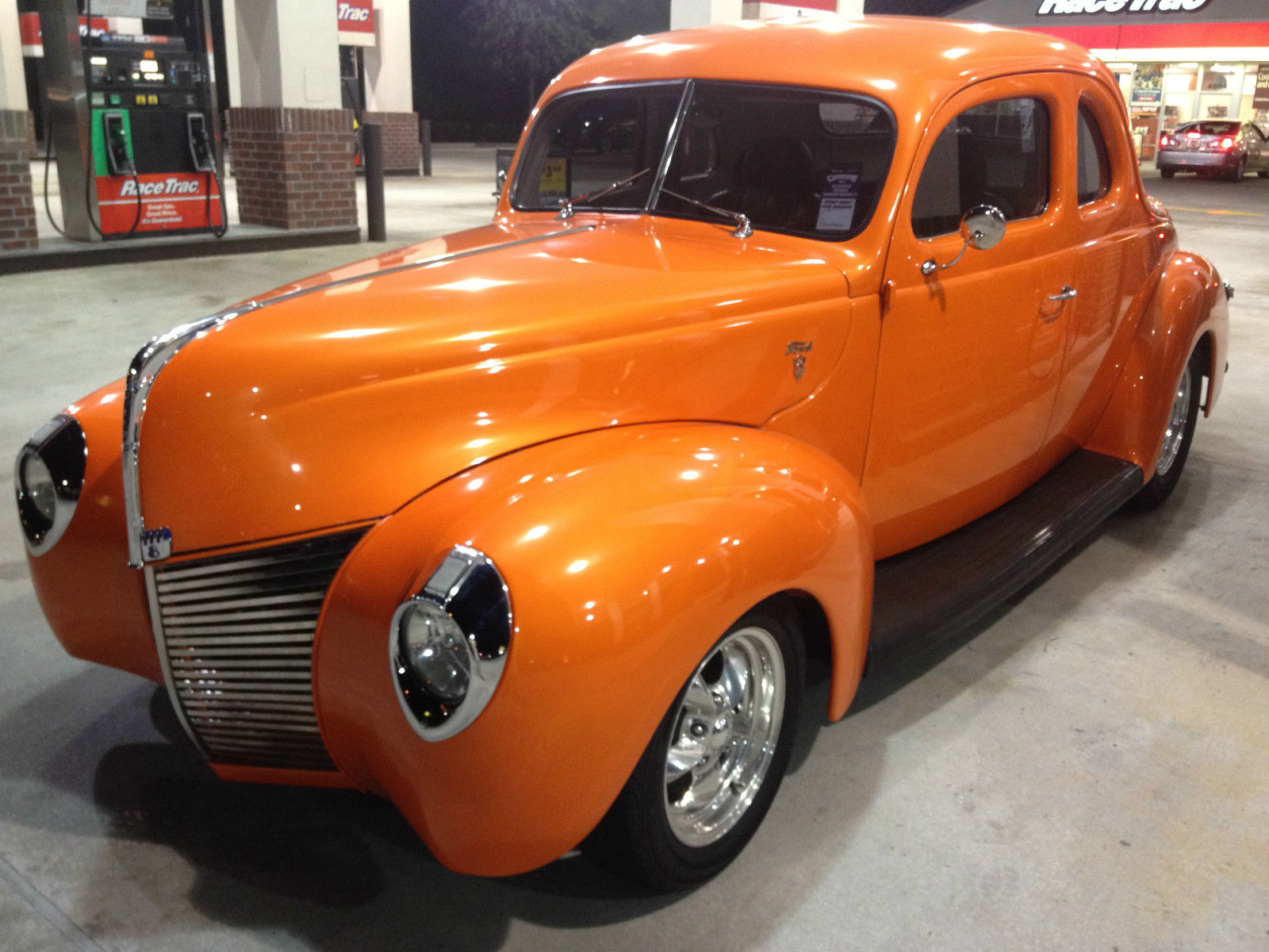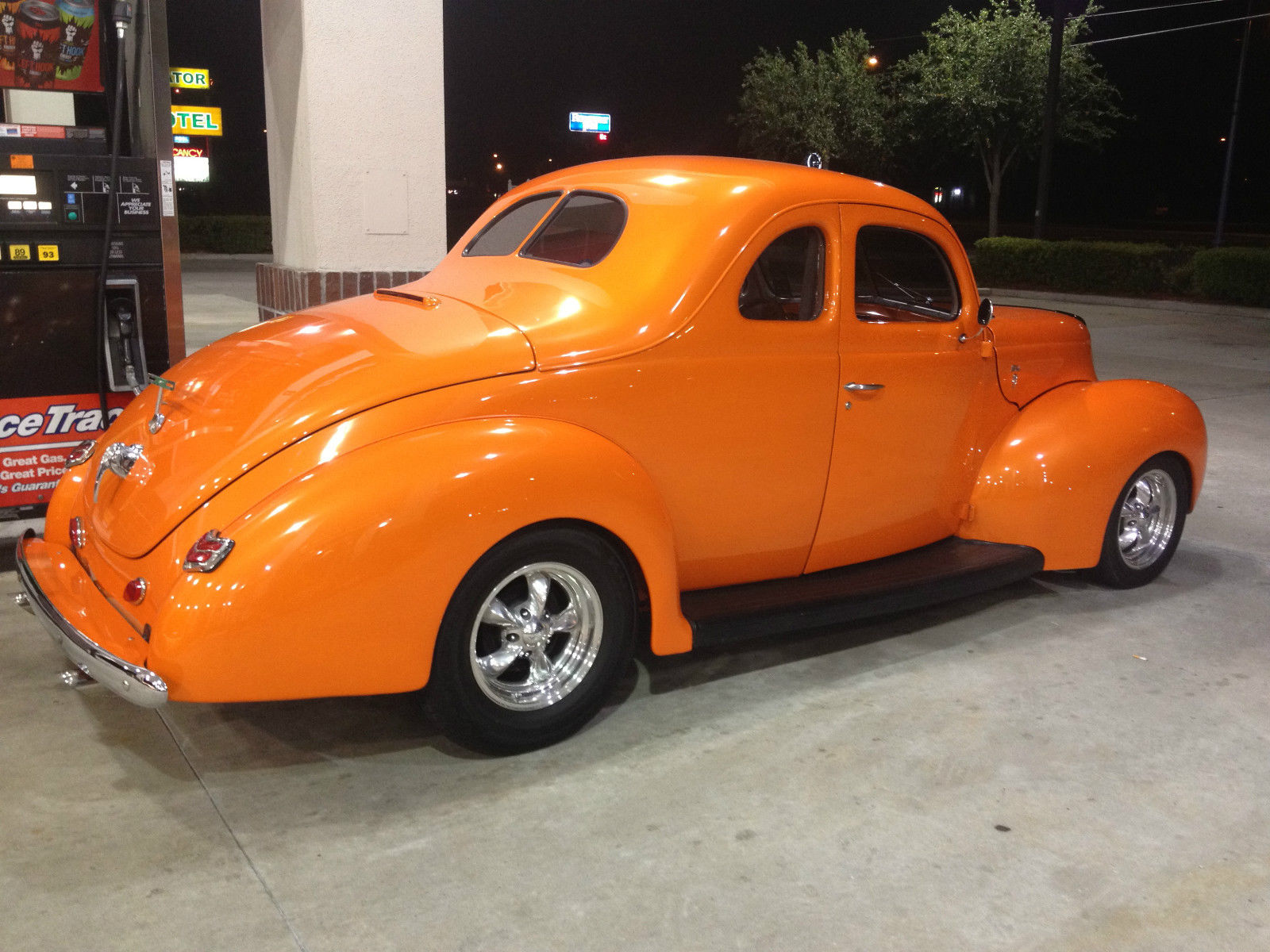 | 1940 Ford Coupe. Stunning House of Kolors Tangelo Pearl with ghost flames on front fenders. Frame painted very nice. Engine compartment is very clean and detailed with subtle Red lights underside of hood and under dash. Camero front Clip Power disc. brakes up front and drum in rear 350 / 700R4 with a 66 Olds Cutlass rear with air shocks. Boyd Coddington Wheels with very good tires. P235/70R15 and P195/60R15 Tan leather interior Has some nice wood trim and panels with a darker carpet. Cd player. New battery Sept. Battery shut of funder pass seat Trickle charger mounted in trunk and the Trunk is detailed. I am not sure on Mileage but they needed it filled in it may be less it may be more but not much. Car is located in Boca Raton S. E. Florida contact is Randy at 954-242-9349 This Rod runs and drives very nice but as with all old Rods there is no warranty expressed or implied and is sold as is. Also have this Rod for sale locally and reserve the right to end add if sold locally. |