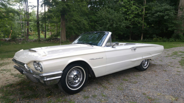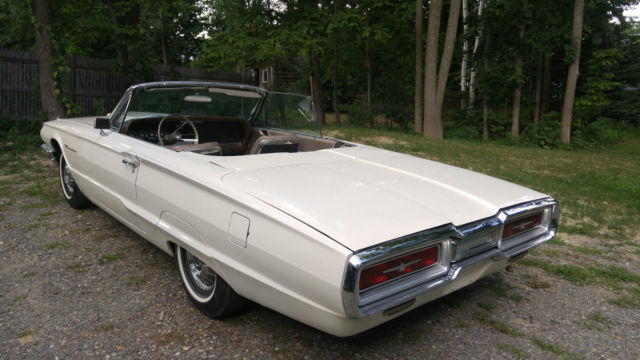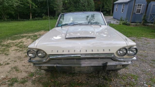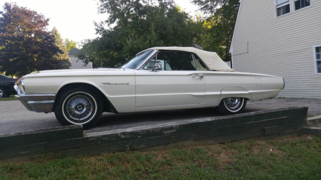 THE GARY COOPER CAR COLLECTION IS UP FOR AUCTION, ALL EIGHTEEN VEHICLES WILL BEAUCTIONED OFF ON E-BAYNOW THAT I HAVE YOUR ATTENTION ITS JUST NOT THEE GARY COOPER, FOR THOSE OF YOU WHO REMEMBER HIM. LOL. BEING OFFERED TODAY IS A PRETTY NICE 1964THUNDERBIRD CONVERTIBLE. THE GENTELMAN WHO I PURCHASEDTHE VEHICLE FROM HAD ITRESTORED SOMEYEARS BACK BUTSOON AFTERCOMPLETION THE GENTLEMAN BECAME ILL AND THE THE CAR WAS PUT INTO DRY STORAGE WHERE IT REMAINEDFOR YEARS. I WAS ASKED TO GET THE CAR RUNNING AND TO CHECK IT OVER WHICH I HAVE.I HAVE FOUND THIS BIRD TO HAVE A VERY STRAIGHT BODY, GOOD CLEAN INTERIORANDIS QUIET RUNNING. THE TRANSMISSION SHIFTS PERFECTLY AND THE CAR FEELS TIGHT TO DRIVE. WE SERVICED THE BRAKES, AND REBUILT THE CARBURETOR,DRAINED THE GAS TANK BUT NOT GOOD ENOUGH AS DURING THE TEST DRIVE SHE WILL SUCKUP OLD GASOLINE WHICH LOADS UPTHE CARBURETOR AND YOU CAN SMELL IT, HOWEVER IF YOU HOLD THE PEDAL DOWN FOR A FEW SECONDS IT CLEARS UP AND RUNS FINE. I WAS HOPING TO DRIVE IT MORE AS THE MORE I DROVE IT THE BETTER IT SEEMED TO RUN.DUE TO THE LENGTH OFSTORAGE I WOULD SUGGEST ALL THE FLUIDS BE CHANGED ALONG WITH UPDATING THE TIRES BEFORE ANY LONG DRIVES. . THE OLD BIRD HAS SOME NICKS AND CHIPS BUT THE PAINT STILL SHINES PRETTY WELL. THE RIGHT FRONT WINDOW IS NOT WORKING AT THIS TIMEI HAVE ORDERED ANEWWINDOW MOTOR.THE EXHAUST IS VERY QUIET ALSO. I CHECKED OVER THE BODY FOR RUST AND FOUND ONE SMALL PATCH PANEL ON THE RIGHT REAR QUARTER REPAIRED DURING RESTORATION AND LOOKS GOOD. THIS IS NOT A RUSTY CAR. FLOORS, TRUNK, ROCKERS, FRAME, ALL LOOK AWESOME, WITH THE CAR COMES A PHOTO ALBLUM OF THE RESTORATION. THE BUMPERS AND CHROME LOOK GREAT. MOST IMPORTANTLY AND I CROSSED MY FINGERS BEFORE TRYING IT, WAS THE TOP, HAPPY TOREPORT IT WORKS FLAWLESSLY. THE CONVERTIBLE TOPIS GOOD DRIVER QUALITY NO TEARS STILL LOOKS OKAY BUT THE PLASTIC REAR WINDOW HAS YELLOWED ITS NOT BROKEN OR BRITTLE BUTDISCOLORED I DID NOT TRY TO CLEAN THE PLASTIC ASI DOUBT IT WOULD MAKE A DIFFERENCE. THIS T-BIRD AND THE REST OF THE COLLECTION IS AVAILABLE FOR INSPECTION. IF YOU HAVE ANY QUESTIONS PLEASE CALL ME DIRECTLY AT 508-864-5974 AND AGAIN MY NAME IS GARY COOPER. GOOD LUCK BIDDING. THE VEHICLE IS BEING OFFERED FOR SALE LOCALLY SO I RESERVE THE RIGHT TO END THE AUCTION EARLY. tHE RESERVE IS VERY LOW SO BID TO WIN....