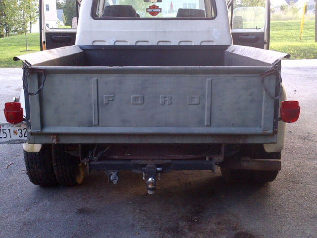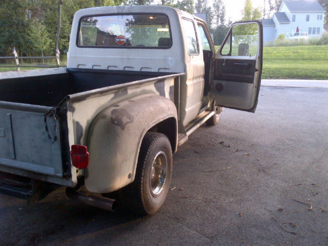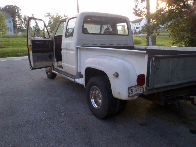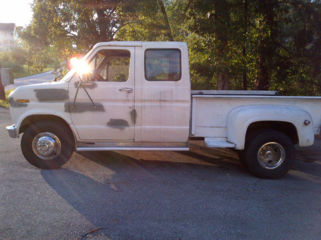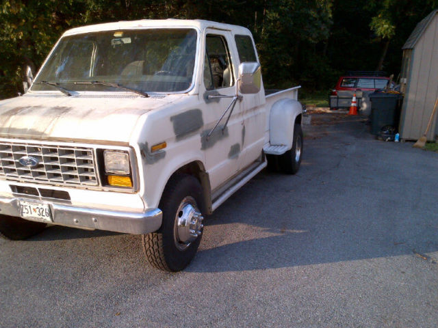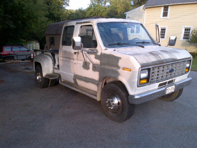 1987 Ford E350 Extended Cab Dually Stepside Pickup, 6.9L diesel, C6 3-speed auto, D70 4.10 rear end. Originally a box truck in Ohio and I think I am the 3-4th owner. Box was removed, a fiberglass cab extension was installed and an original steel Ford stepside bed was modified to fit. Yep, it needs paint but the body is in very good shape with no dents or major body work needed. The worse part is driver side lower front windshield which is very common for the older vans. The interior needs completing. The wool insulation was installed by a previous owner but there's much better materials now a days to use. I just left it in for the time being. The rear seat flips up for storage. The truck runs very well but don't expect high speeds with the 4.10 rear end and the 3speed auto. All lights work, a/c needs to be looked at, doesn't blow cold, radio stopped working awhile ago but maybe something simple. Mechanically, the truck is very sold but needs some maintenance, oil, filters, etc. The truck can sit for weeks and I can get in and start her up with no issues. No smoking at start up or driving. Brakes are good but the emergency brake is dragging and needs to be disassembled and cleaned up. I've been collecting replacement rubber weatherstripping which will be included as well as any extras that I have picked up. Look at the pics and I'll add a link to a you tube video of the truck running when I have it loaded up. Any personal items seen in photos are not included. Interested parties....ask questions, inspections are welcome, winning bidder is responsible for a $250 immediate payment to my Paypal account. Transportation is the responsibility of the buyer but I can assist. Vehicle sold as is, where is, no returns. If you are the winning bidder you own it....I'm not asking an arm and a leg for the truck, just recouping my initial investment. Don't bid if you don't like people staring at ya or answering questions....happens all the time when the truck is driven. Hate selling it but other projects are taking priority. If interested I have a you tube video with the truck running....I can't post a link to the description but contact me and I can send you the link. Thanks.