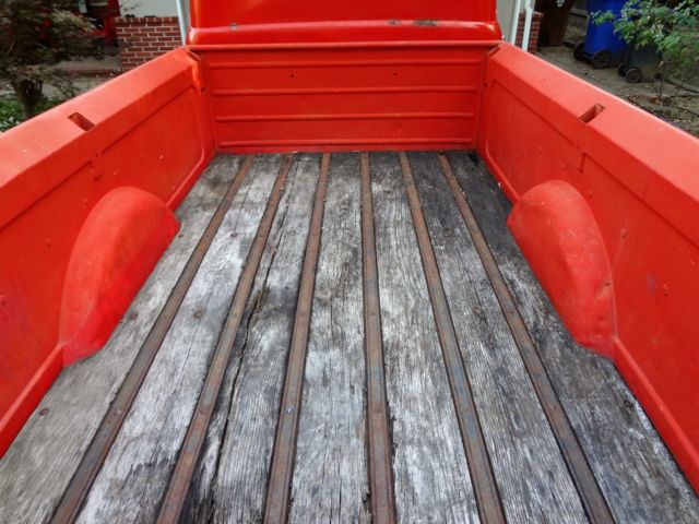 Great original company truck from Liberal Gas Company in Liberal Kansas. Very soli, original condition. Starts good. Drives good. Brakes good. Looks good.Previous owner swapped the original4 speed for a 4 speed from a 1981 Ford truck for a more practical cruising experience. Original4 speed included. Completely dent free. 1 repaint many years ago. Paint is shiny but has its share of wear and tear as a truck of this age would. The only dings to speak of are from hauling stuff on the inside of the bed and a couple dings to outside of tailgate at the bottom ridge.. I see slight ripple here and there in hood but overall very remarkable condition.Both doors open and close great. Both windows go up and down great. Heater works. Horn works. All lights work. Tem, oil and battery gauge all work. Fuel gauge does not currently and the speedo does not because of 4 speed swap. 17" wheels with great tread.Only rust to speak of is some minor bubbling at bottom of stake bed slots.The missing paint underneath back window is not rust.Registered until September 2017.Very fun to drive and I get thumbs up everywhere I go.Thanks for looking.