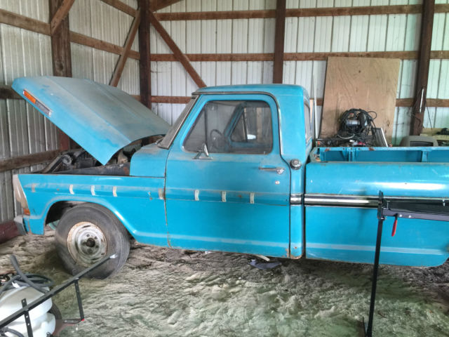 | 1972 Ford F-100 Ranger. A true barn find. In barn for last 18 years. One family owned since new. All fluids have been flushed and refilled. Does run but needs work. Nice solid original truck. |