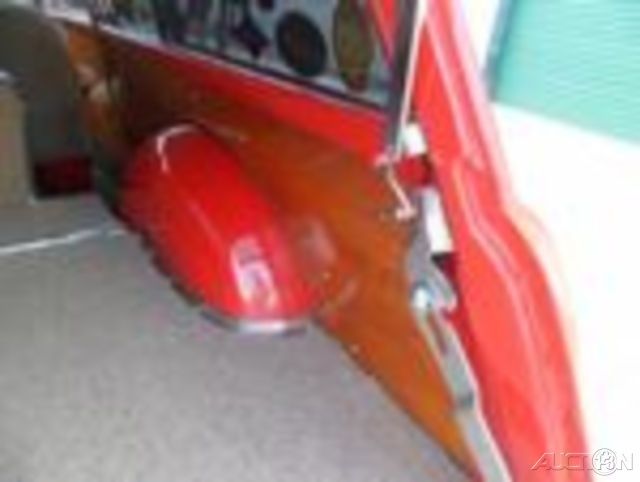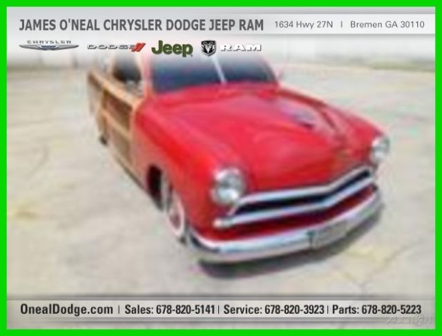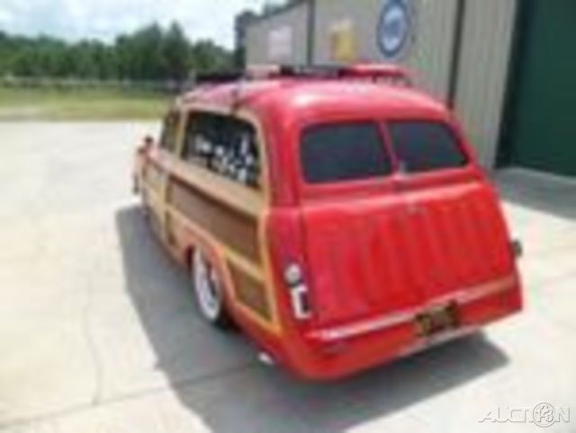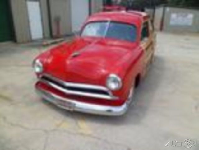 1951 Ford Country Squire REAL Woody Wagon. The wood work is excellent and the Red paint is as good as it gets. It is very slick with a deep glossy shine. The car is powered by a GM 350 engine with a 4 barrel carb and Dual Exhaust that sounds great. It is Vintage A/C that blows cold and has a Run Cool Aluminum Radiator that keep it running cool. I have driven it with the A/C on and it has not got above 160 degrees. It has a good looking and very nice luggage rack on top. The interior is very nice as well with cloth seats and OEM style carpet that looks new. The headliner is cloth as well that matches the seats and also looks new. This car has power steering and power disc brakes. It has a nice JVC Stereo/Cd player so you can listen to your favorite tunes. The door panels are wood as is the valance interior panels. All the chrome on the rear door hinges looks great. The front bumper, grill and headlight bezels look new. The rear tailgate is louvered and opens and closes good.All the glass is good and the door glass rolls up and down easy. The headlights, taillights, blinkers and brake lights all work as do all the gauges. The Coker Wide White Radial tires with the Red Steelie Wheels and small center Ford Caps really set the car off. This Woody is lowered just right to give it that California Cruiser stance. This is a California car. I would not be afraid to get in this beauty and drive it anywhere. It was built to drive and enjoy. Very RARE car that you may never see another. It will get you alot of attention and is a crowd pleaser