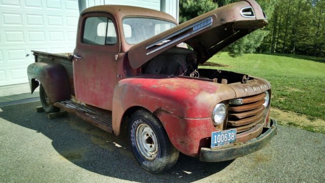 1948 Ford F1 Flat Six Started out as a project and I'm moving on. Up for grabs is a 1948 ford F1 Pickup Truck. This truck sat in a barn for about 30 years before i bought it to Rat Rod it out. Truck is in decent shape, worst parts are in the pix attached. 1- There is a hole through the roof about the size of a nickel, it appears to be from a drip in the barn, that is the only rust through that I can find on the cab. 2- The hood is rusted through at the nose and has separated (see pic) 3- Because it sat so long that it appears that someone has mixed qwikcrete in the bed.This truck has not run for about 30 years. We put a rebuild carb on it and running it through a can and got it running. I think 2 cylinders arent hitting, but, it moves! The manual tranny shifts smooth!!Did a little rigging to get t to stop as well so that it drives around the lot without pushing it everywhere.Truck is pretty much complete. Someone has stolen the radiator, heater and hinges. EVERYTHING ELSE IS THERE!pulled the side glass a and quarter glass frames out to have new glass made, didnt have glass made yet. The body of the truck has quite a few dings, rust and other stuff, but nothing so bad that cannot be banged out of patched. This truck is a great re-buildable truck to restore or rat. Ive just lost time. (Still working on my 52 F1)This truck is NOT ROADWORTHY,but, it will drive enough to get it loaded. I am adding a 1995 Chevy S-10 4 banger with air, that i was going to use the frame and other upgraded stuff. Engine/frame are great on it but the tranny is bad, keeps blowing clutches. Clear title If buy it now goes i will throw in a disassembled 1969 302 that may need machined that i was going to put in the F1. Crank, heads, pistons, block all included. Have any questions? Email me prior to bidding. There is no warranty BOTH vehicles will need towed! $500.00 Non Refundable Deposit due within 7 days of auction end. Paypal for deposit only is ok. The rest in cash or cashiers check upon pickup. Shipping is the responsibility of the buyer. |