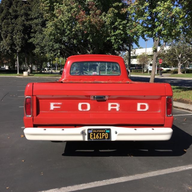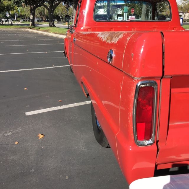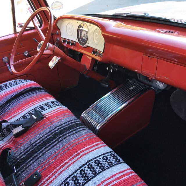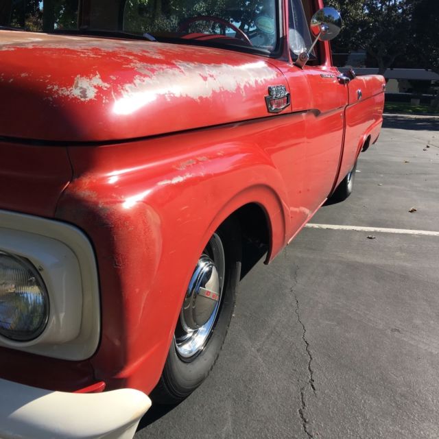 This truck is as clean as they come. I am the third owner. Sat in a barn for many years, just under 83,000 original miles. Spent most it's life in Idaho and Wyoming with no salted roads. Now in Southern California. I have had a ton of fun with this truck, even took it to the Bonneville salt flats twice. It was even in a professionally produced music video for Renee Plant on Youtube. Truck was ordered with the optional bigger 262 cu in six. Engine runs perfectly, with a little choke, starts right up at any temperature and hauls down the road. Doesn't seem to burn any oil. The ONLY issue I've ever run into was a slightly leaky rear main after driving for more than 40 miles or so. Original 3-speed transmission shifts perfectly. 3-speed column shift - all column mechanics were rebuilt, so shifting is tight. Every wire on this truck is well preserved original. Still has the engine tag even. Suspension is flawless as well. Front axle was replaced with a 3-inch Sid's drop axle. Front and rear springs were professionally de-arched to provide about 5-inch drop in front and 3-inch in rear. Drag link and tie-rod ends (with Sid's tie drops) were replaced recently. For a lowered truck, there is no bump steer and tracks straight down the road. A really nice ride. Rear still has enough suspension to haul a load. Nothing has been cut or C-notched. Brakes are also really solid. Exterior is original Henry paint. Just a couple small repair areas where paint was blended in. Truck has never been repainted. Front radiator support and inner fenders have been sandblasted and powder coated. Grill and both front and rear bumpers and brackets freshly painted Wimbledon White. Some minor repair was done to the tailgate, rear bed corners and old mirror holes in doors. Original red paint still waxes up really nicely. Only rust of any concern is in the usual spots inside the bed, but nothing bad. Interior is clean, original condition. Original headliner and paint. Steering wheel and shifter were restored. Original (rough) upholstery on seat, under the blanket. New/Upgrades: