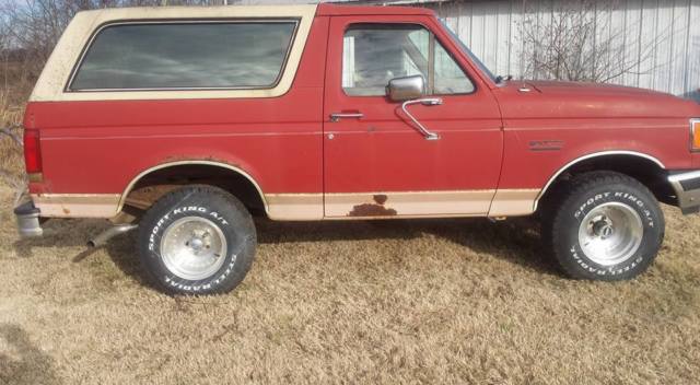 For Sale 1988 Ford Bronco 4x45.0 V-8 auto was running and driving, then started getting water in the oil. Head gasket? Cracked head or block? I haven't a clue. This is the way I bought it. They started to make repairs and never finished. drivers side window stuck down or off track. i was told it shifted as it should and the 4 wheel drive worked. Typical 88 bronco rust. THIS WILL BE A PROJECT NOT A BUY AND DRIVE!! Ask questions before you bid. Selling "AS IS WHERE IS!!!" Metropolis Il.On Dec-09-16 at 13:28:03 PST, seller added the following information: Clean clear illinois title