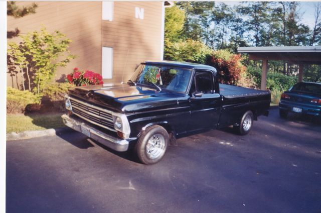| This is a mostly original standard F-100 with some key modifications to improve comfort and performance. There is minimal rust: some rust around the battery box. but that's it. The chassis features a twin I-beam front suspension. complete with radius arms bushings. The engine features the FE block. with higher-compression ratio. Horsepower. from the factory. was 215 horsepower; but is now higher. due to better exhaust flow due to Glass Pak mufflers. The engine is backed up by a dependable and durable C4 automatic transmission. All mechanicals are good and sound. save for the engine which has bad connecting rod bearings. The interior is a custom upholstered cabin with diamond tuck vinyl with cloth inserts and bucket seats. Relative to that are "shaved" door handles. actuated by push buttons; inoperable at this time for reasons unknown to seller. The original aluminum side trim goes with the sale. The paint is still glossy and in very good condition. A battery "trickle" charger goes with the sale. Please note. that the seller has lost the ignition key; however. that is easily replaced. If either you or a friend desire to see this truck in person. the owner asks that you call (425) 922-0483. in order to set a time. |