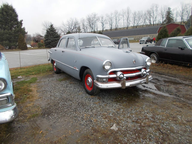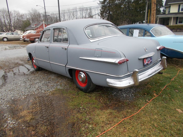| 1951 Ford Sedan, Flat head V8 3 speed with overdrive This car runs and drives and is pretty solid with a very littlr rust. it is in primer, the body is strait the interior needs some work. with a little work it could be a good driver or a great canidate for a full restoration. The motor runs good, has new water pumps the trans and clutch work good There is a very reasonable reserve so bid to own. If you have no feedback please emal me before bidding |