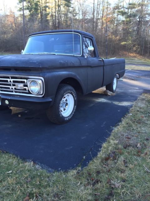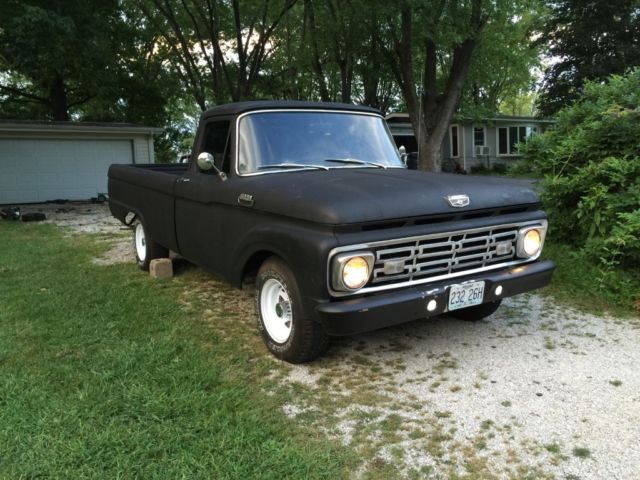 You are viewing a very nice 1964 F100 long bed truck. This vehicle is laser straight and has basically no rust. It has new tires, new battery, coil, wires, plugs, cap and rotor, points, condenser, alternator,and carburetor base plate. I had been driving this truck often up until about a month ago when the weather started getting cold. I am now having a difficult time starting it. I believe it to be carburetor related or a timing issue, but I'm not a mechanic. I am moving out of state in two months and don't have time to fix and I can't take the truck with me. This truck has a very nice stereo system and speakers. The undercarriage on this truck is excellent. This truck could be a show truck with some restoration work. I have owned several of these trucks and this one is by far the most solid and complete. There is zero rust on the floor boards or side steps. The dual exhaust is newer. The doors open and close as they should. The windows roll up and down nicely. I could go on and on about this truck. It's a four speed on the floor and has the 352 FE big block engine. I have a brand new complete disc brake conversion kit along with master cylinder. The kit comes with rotors, brake calipers, pads, and all other hardware for install. I hate to sell this truck but don't have a choice. These are very difficult to find in this condition for this price range. Thanks for viewing.