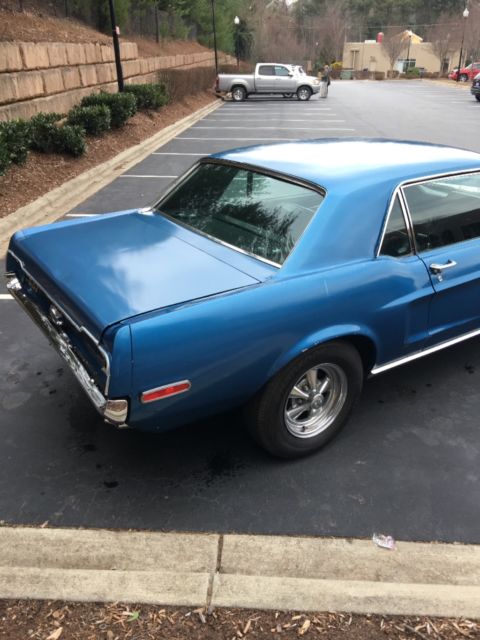 You were looking at a 1968 Mustang Coup, it has a 302 engine in it automatic transmission which was rebuilt and I do have the records to prove so I have a file on this car about 3 inches thick of everything that was ever done to it it runs and drives great it is a daily driver however it does have a transmission leak somewhere The car is equipped with power steering and it did come from the factory with AC air conditioning however the components for the air conditioning are missing it could use a new paint job this is about as rust free of a car you will find without paying an absolute ridiculous price it does have some bubbling spots here and there but nothing significant nothing through and through no cance, , seems like it has a small cam it has a 600 CFM elder Brock carburetor with electric choke in an aluminum rpm elder Brock intake Like I said runs and drives very stout handles very good for a old car, It's not all over the road in the steering is not loose it is daily drivable with a little bit of work this car can be very show condition all the floor pans and trunk pans are absolutely solid without any signs of rust, The bottoms of the doors are rust free Pretty much the whole car is rust free like I said besides some bubbling care in there which is not really rust which is more surface rust underneath the paint