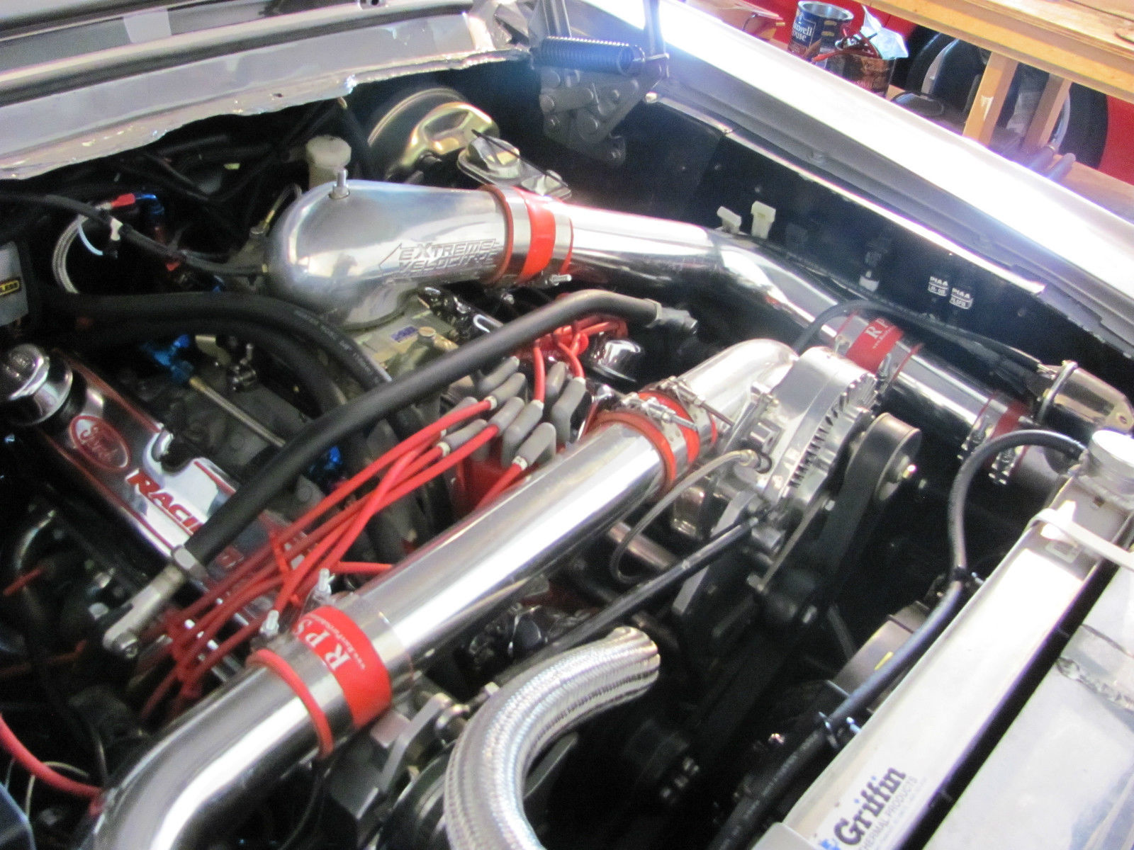 | 1968 Mustang Eleanor This project started off as a $20K mustang which I bought on ebay about 8 years ago. After taking it apart and getting rid of any rust etc. I basically ended up with an expensive roof from that car. I bought a Nascar style full frame from Muscle Up Performance in Janesville Wisconsin. The frame was powder coated and had the best of the best parts for the suspension. Four link rear suspension with a Winters rear end. QA1 coil springs. Sweets power steering rack. heim joints for all suspension pivots. adjustable anti-sway bars. Wildwood 4 piston calipers and discs. The brakes are power with and adjustment for front to rear bias. A top line Eleanor kit was selected along with all new panels throughout. The Eleanor was cloned as much as possible to the original car. All glass is new along with all trim etc. Nothing was reused from the original car except the roof and door pillars. The engine is a 302 Ford Dart block. All new components were selected with only the best equipment. There is so much to list but engine dyno gave it 560hp at 10 psi boost and just under 600 ft. lb. of torque with 10psi from the Novi Paxton supercharger. The air cooled intercooler will only increase these numbers with a base lone of 600 hp. This does not count the water injection nor the 200hp Edelbrock nitrous boost which has not been filled or used. The transmission is a Tremec 5 speed TK600 to handle the enormous torque and power along with a Zoom clutch and hydraulic throwout bearing. A short shifter was also added to the transmission. Some of the special features which you will not see on other cars like this is that the engine sits 2 inch back from its original location and 2 inches lower. Extensive work was required to move the fire wall back and an external belt drive oil pump and Moroso 7 quart oil pan without a sump. The oile filter is an external in line model. This gives the car much better weight distribution and a lower center of gravity. A frame mounted roll bar was installed along with vintage seat belts. The interior is complete with appropriate seats and leatherette door panels. Rear Bose speakers were taken from my GT-2 and installed at the rear. Wheels are 17 inch with Riken Raptor 245 and 275 tires. Autometer gauges have been incorporated into the dash with an aluminum bezel. Additional sheet metal has been installed under the car and through the fron to manage the airflow beneath the car. The GT500 stripe is painted on not a $45 decal. The trunk has an electrical latch and can be opened from the glove box. Also an emergency pull cord in case the battery dies. There are so many features and I am sure I am forgetting a lot of them however I will try and update them during the auction. I have included a few pictures of the car during the build so you can see what makes it better than anything out there. I will help with shipping and as the car is more than 25 years old getting it into the USA will not be a problem. |