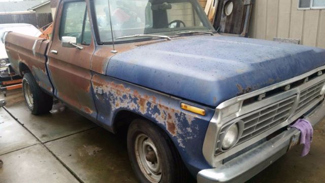 1974 FORD TRUCK CUSTOM CALIF PATINA LOOK F-100 1/2 TON SHORT BED FLEETSIDE.THIS IS A ONE-OWNER TRUCK WITH CALIFORNIA BLUE PLATES.THE FLOORS AND ROCKERS ARE SOLID AND THE WHEEL WELLS ARE SOLID THE ONLY RUST IS THE SURFACE RUST WHICH IS KNOWN AS THE PATINA LOOK...V-8 360 ENGINE AUTOMATIC WITH C6 TRANSMISSION THE TRUCK IS EQUIPPED WITH POWER STEERING AND AIR CONDITIONING..TRUCK HAS BEEN PARKED A FEW YEARS.... SO WITH THAT BEING SAID THIS WOULD BE A AS IS SALE TO THE WINNING BIDDER........ AND I WILL ANSWER ANY QUESTION THAT YOU MAY HAVE ON THE TRUCK AND NOT THE RESERVED PRICE..DUE TO BEING FAIR TO ALL OTHER BIDDERS................ ...................THANK YOU AND GOOD LUCK................... THE BUYER IS RESPONSIBLE FOR ANY AND ALL COST FOR VEHICLE PICK-UP OR TRANSPORTING OR SHIPPING AND ALSO FOR MONEY WIRE TRANSFERS THROUGH PAYPAL...... THE BUYER ALSO NEEDS TO MAKE A $1,000 DEPOSIT TO PAYPAL WITH-IN 24 HOURS OF CLOSING AUCTION.AND THE BUYER HAS 3 DAYS TO MAKE FULL PAYMENT TO PAYPAL OR IN PERSON WITH CASH ONLY....... |