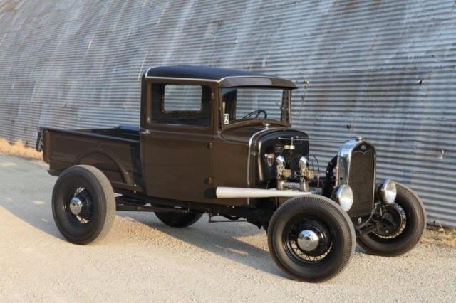 Truck was built 5 years ago. It was put together in the traditional style, trying to stick to the 1940s bare bones "Go Job" era. Body was taken down to bare metal, and all rust was replaced with the usual patch panels. Motor is a Model B diamond block with a Snyders cast iron high compression head, original Evans intake manifold, and two Stromberg 81 carbs. The motor is hooked to the stock Model A transmission and rear end. The brake systemis the original mechanical style with floaters installed in the front, it stops great. The electrical system is the stock 6 volt positive ground withall new, correct cloth covered wiring harness. Suspension is stock springswith reversed eye main springs, and a few of the springs removed. The frontcould use one spring added back to the pack to give added suspension travel asit does bottom out on large bumps. Wheels are 35 ford 16" wires with7.50x16 rear and 6.00x16 front. The interior is a simple black vinyl, andall gages, lights, and switches work as they should. This truck was featuredin the spring 2014 issue of Traditional Rod & Kulture! This is a greattruck that runs and drives like it should. PLEASE CALL JOSH WITH QUESTIONS!!! (507)251-1356 |