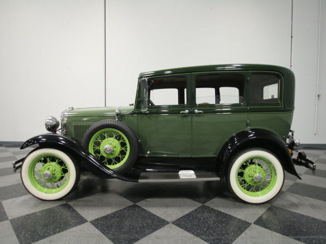Why is the Model A the perfect starter hobby car? They're easy to drive, affordable, parts are plentiful, they teach you about driving and servicing an old car, they really are stylish, and shall I go on? This 1931 Ford Model A "slant windshield" sedan is a wonderful introduction to the world of old cars and offers a bunch of upgrades designed to make touring a pleasure.The slant windshield sedan is a 1931-only body style, easily identified by its slanted windshield (no kidding) and lack of an exterior visor like the earlier models. The effect is that this one looks bigger and more upscale than its older siblings, and with the two tone paint combination, the difference is striking. The colors are factory correct Brewster Green and Kewanee Green, which give it an understated and elegant look, particularly with the black fenders which were standard across the board. The restoration is several years old and has plenty of tour miles on it, so it's no longer a show car, but it's still the kind of car that attracts appreciative glances from bystanders and you'll never hesitate to take it to a local cruise night or casual show. Ford's use of stainless steel means the bright work remains in great condition, and this one carries an optional side mount, wind wings, and a grille guard, plus a jaunty luggage rack. And for safety, auxiliary stop lights have been added to improve visibility on the road.The burgundy fabric upholstery is typical of an older restoration and is showing its age, but for a car that cost less than $700 when it was new, the surroundings are pretty luxurious. The town sedan offers room for five and these sedans make for wonderful tour cars with their all-weather capabilities and comfort. The seats are still comfortable so you can get in and start driving right away and maybe plan on an upgrade some other time. Matching door panels offer a cohesive look and the bright door hardware is in good shape with no broken handles. The controls will be familiar to any Model A owner, with a big hard rubber steering wheel and 3-speed manual transmission that feels natural in your hands. The '31s are easy to recognize with their round speedometers and more ornate instrument panels, and as a car built for touring, this one includes both an accessory temperature gauge and a turn signal setup attached to the steering column. Ford's 200 cubic inch four cylinder engine is all about torque, and the over-achieving little machine makes a distinctive sound that's been beloved for generations. It happily pulls the sedan around without working too hard and cruises at 45 MPH, so it's not a problem on modern surface streets. This one has years of reliable service behind it, so it runs like a Model A should, and there's plenty of evidence of recent maintenance. The engine is correctly dressed in green engine enamel and with cloth wiring, a Zenith carburetor, and those copper leads for the spark plugs, it looks quite authentic. For touring, it's been upgraded with a 6-volt alternator, oil filter, oversized cooling fan, and a log-style manifold heater that's pretty good on those cool evenings. The 3-speed manual transmission shifts cleanly with a quick double-clutch and the brakes are effective for a vehicle with modest performance and light weight. 19-inch wheels were finished in correct Apple Green and carry period-perfect wide whites.You know we love Model As (who doesn't?) and this handsome sedan is ready to teach you all about the joys of a bygone era. Call today!