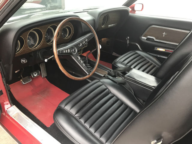1969 Mach 1 R code 428 BB shaker hood. Candy apple Red Fold down back seat. This is a low mileage freshly restored very original Mach 1. This Mach was gone through inside and out, all new parts, and chrome. I have over 300 pictures of the restoration. The interior has new dash pad, seat covers, carpet, and instrument cluster restored. The floor boards are perfect, and I have lots of pictures. The exterior has fresh paint, all new chrome, and striping. The engine is numbers matching, and has all original parts, all engine tags are in place. New ceramic coated headers, and new exhaust. Has original 4 speed, and the Mach runs great, this is a show piece and great driver, starts on first try. I have the Marty report, and I have pictures of the restoration completed within the last two years. This is an investment grade classic, reason for sale is because I own 2 and one has to go. Any questions contact me.Tim @ (214) 914-4305 |