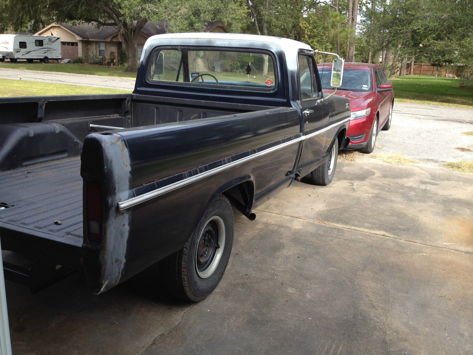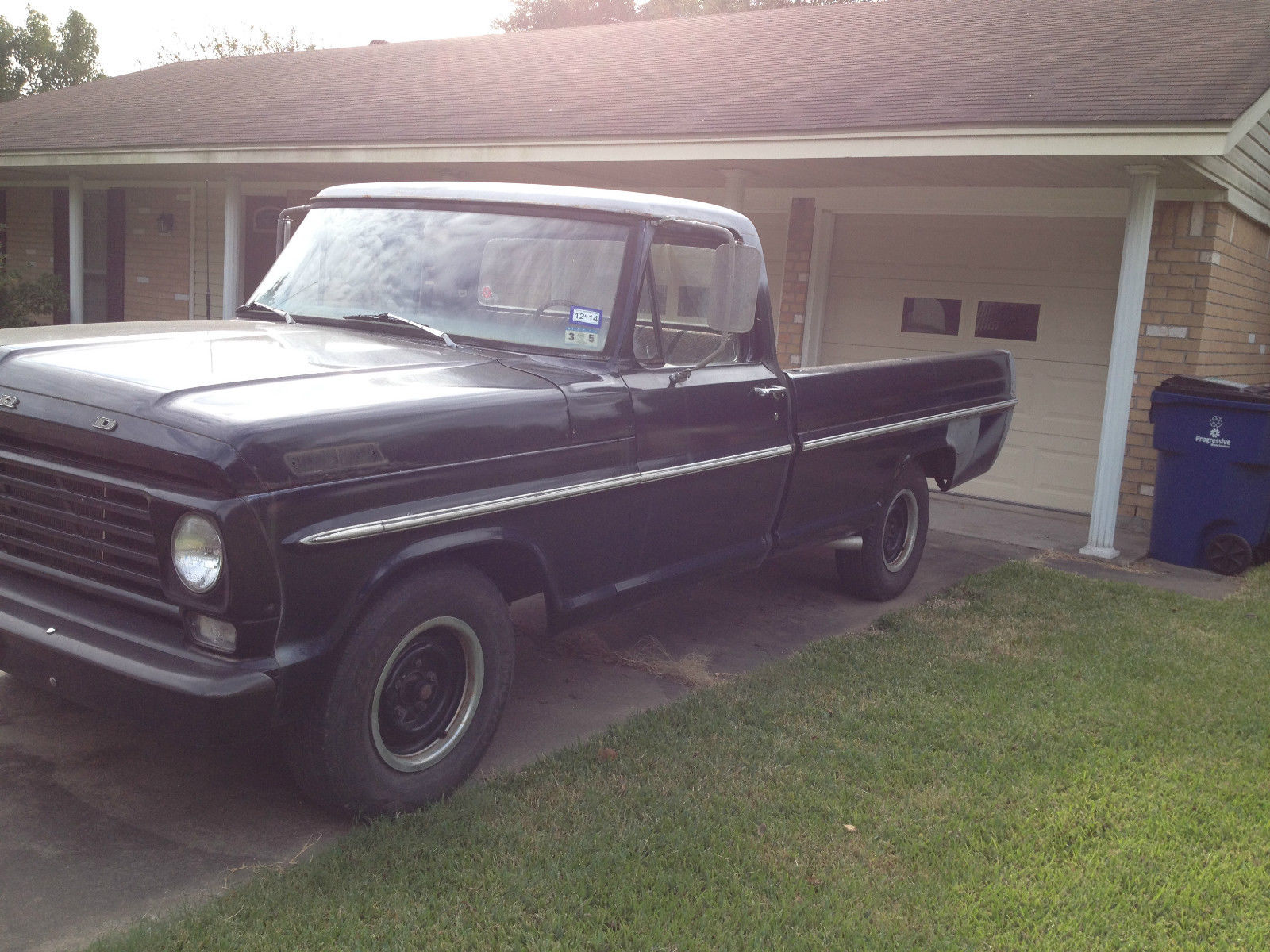 | 1967 Ford F100 pickup LWB. Runs excellent wont find a better running truck this age. Has a 240 inline 6 with three speed manual transmission. Current inspection. Many new parts in the past two years that I have owned it including. all aluminum oversized radiator. custom 22 gal fuel tank setup under bed. offenhauser intake manifold with holley 4 barrel carb. ford inline six efi exhaust manifolds. custom exhaust with flowmaster supper 44 split to duals (sounds great). pertronix electronic ignition. alternator. class III hitch. and a brand new battery. Also have extra parts that go with the truck such as all the stock manifolds and carb. the hubcaps. spare solid hood. and brand new window seals. I cannot stress enough how well this truck runs. It isn't the prettiest and has some rust and a dent in the passenger door where some jerk backed into it and drove off. Local Pickup Only I will not ship this vehicle. |