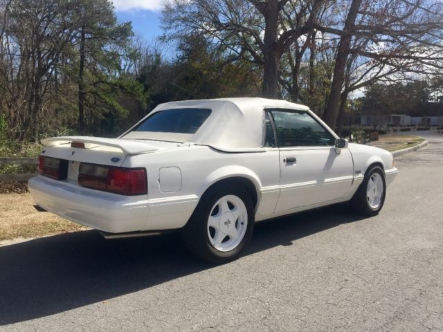 3rd owner, Ford Mustang LX 5.0 Triple White Feature convertible limited edition in 93, only 1500 ever made. Original Paint, Original Motor, Original documented 26k miles, Original top in great shape. This car is super clean -inspections welcome. They came from the factory with vibrant white paint, wheels and leather. Same family owned for 23 years. No modifications. No undercoating car is white metal underneath see pics. Factory exhaust and mufflers. Original tires were replaced a few years ago due to age and the new tires have plenty of tread. No leaks underneath. The car still retains the original pony running logo floor mats that were only made for the feature convertibles and they are in excellent shape see photos. Pictures were just taken yesterday in the sun so that is the true look of the vehicle. Also in the trunk is the original top boot cover in white for when you put the top down. This is a great car for the summer shows. A triple white 93 like this just sold at Barrett Jackson auction for over $40k with 167 miles. Drives and runs great with no issues. The power door lock actuators are not working it's a $35 part and prob $75 in labor these fail with age. ****Autocheck is incorrect, I have the carfax and supporting documents that this is a 3 owner car. Not sure why autocheck is saying 4 owners. If you do not have the ability to run a carfax I can email you the report. Thanks for looking. Please serious bidders only. |
