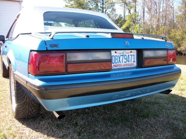 Supernice LX 5.0 convertible. Very rare Bimini blue color. Only 67 5.0 convertibles produced in this color. Original paint is super nice. New top, wheels, tires, throttle body, cold air intake, Flow Master cat back exhaustand upgraded CD stereo with satellite option.Loaded with options including overdrive trans. and leather seat surfaces. See pic. of window sticker. Runs and drives fantastic. Everything in good working order. Adult owned. I am the third owner. Let the pics. speak for them selves. Please email or call Harry with any questions. 757-646-0816 |