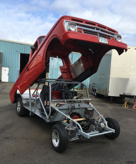 This incredible Custom 61 Ford Unibody pickup is a one of a kind, show stopping masterpiece. Built by Hot Rod Hall of Fame and drag racing legend, Jim Green with one of his signature Ford SOHC 427 engines. This truck can be driven anywhere at anytime with ease. The bed has been shortened a full 10 inches and covered in beautiful Porsche Red paint. Licensed and street legal.Can be driven with body up or down. - Ford SOHC 427 engine - Crate engine #435 - 845hp - Nitrous oxide injection - MSD ignition - Ceramic coated exhaust headers - Flowmaster dual exhaust with slide out mufflers - TH400 automatic transmission - Polished aluminum valve covers and air cleaner - Chrome alternator and billet accessories - Aluminum radiator with electric cooling - Hydraulic tilt body with controls inside and out - Full custom frame with 12 cage - Ford 9" rear - Dual Holley carburetors. Other intake options available. - Powder coated frame - Custom Mustang II front end with billet aluminum upper control arms - Power disc brakes - Hidden wiring throughout - Beautiful aluminum bed with polished stainless - 20 gallon fuel cell - Massive tubs - Tilt steering column - Autometer speedometer and gauge cluster - B&M Supershifter - Laser straight Porsche Red paint and body - 14x6 and 16x15 inch Halibrand custom wheels - The truck is ready to win shows, and drives fantastic! Bank transfer or cash in person only. Bidders with no history or negative feedback will be deleted. Available for viewing at Jim Green's Performance Center in Monroe, WA. Send question for phone number. |