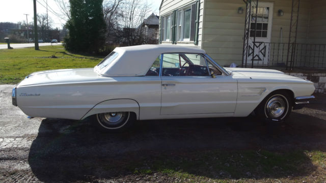 I have owned this Thunderbird since 2008. I drove it approximately once a year in a 5 mile parade in the summer time in Ohio. The rest of the time and year the car was tucked away in inside storage and pampered. I have changed nothing about the car since I purchased it, and it was keep on an island in lake erie that does not use salt on the roads in winter for the entire time I have owned it (except the last to years which it was again stored indoors all the time). Speaking of winter in Ohio, other than the last 2 pictures, all of the pictures were taken last week on a rare warm day in ohio winter, so that is why it looks so dull and dead in the neighborhood (if you live in ohio in the winter, you know what I mean). The guy I bought the car from was an intermediate-used-classics-salesman from my understanding. Documentation shows that he bought the car from an older gentleman who owned and pampered the car since almost brand new. The engine is a 390 V8. The Thunderbird is an automatic with shifter on the steering column. The car has 53300 miles on it and that is original (from my knowledge). I find no bondo on the car, no scratches or dents and the crome has shined like new since I have owned the car, one(?) of the dual mufflers has a leak, giving the car an even more muscle-car sound so I never had it fixed. The convertible top folds into the trunk that opens hydraulically (opposite the direction of a normal trunk opening) and then the trunklid comes back down to completely hide the top and unfold an upper-back-seat-cover plate, again hydraulically (so cool). The Thunderbird has a slide-away steering column from the manufacturer in the 1965 model year as-well-as sequential turn-signal taillights for that model-year that Ford has brought back in todays mustanges. The speedometer looks like a horizontal thermometer, the redline goes from left to right as the speed increases (and I thought it was cool enough to mention). The steering column has an engine-kill-switch that requires explaination (which I will provide in writing, in conversation, and/or videotape for winning bidder). I am unsure if the kill-switch is manufacturer, after-market-added-on or is unique to the wiring of this car. I know that once I figured it out, it was easy and controlled ignition and convertible functioning of the car (I saw it as a definite plus to the car and its security). Everything works and this car has been my classic baby. The car was featured in my brothers professionally video-tapped/movie quality wedding and stole the show. I have loved this car and it is time to let someone else appreciate it for the classic beauty and piece of american heritage it is. The Thunderbird is in good (parade) condition but will need more attention than I can give it, so I would rather see it go to a good home than fade away over the years in storage. I am located in Northeast Ohio, so if you are close come and see it, at any rate, good luck and thanks for viewing my listing. Please price this vehicle on ebay and elsewhere (as I have) and you will see that my prices are below what these cars usually sell for. My reasoning is that I am not a mechanic (and doubt that I am going to become a mechanic anytime in the near future), I have several classic car and I cannot take the time and expense of upkeep of any of them and do not want to see them deteriorate due to neglect over time, (plus, I'm back to newer car (they come with warranties in my older age, much easier for me). Car lovers will understand. Here comes some of the disclaimers. There are no warranties of any kind on this car and the buyer is responsible for all shipping and transportation cost associated with this sale. I recently sold another of my several car collection cars internationally and have become familiarized with international sales. All monies for this auction are to be in US currency, cash, certified check that clears bank before delivery, or wired funds again deposited in bank before delivery. Thanks again and good luck.