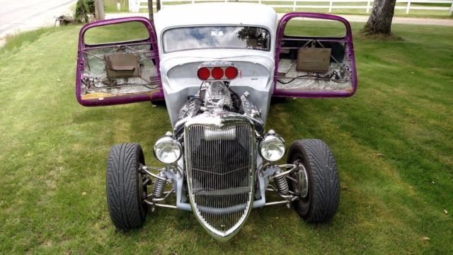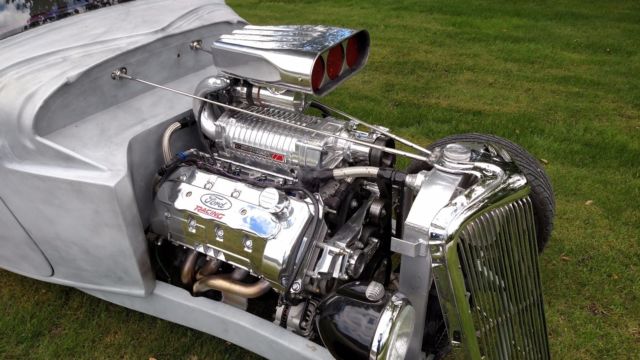 This is a truly one of a kind original steel body 1933 3 window Ford Coupe. Equipped with one of the coolest engines Ford ever produced - A Hand Built 4.6L Supercharged 32V pulled from a wrecked SVT (Terminator) 2004 Mustang Cobra. Engine and Transmission had 18,000 miles when wrecked and salvaged. Countless $ and custom fabrication were required to mate this engine with a 33 chassis. When this car is completed it will be one of the sweetest street rods ever built. (How many street rods with a six speed have you seen?) This car was a long time project I shared with my father who has passed away, and I simply don't have the cash flow he did to finish it without him. Much of the fabrication is complete, I am currently working on completing some of the outstanding fabrication and stainless steel exhaust. The car is very drivable as it sits, and all it needs is loose ends tied up, engine dyno tuned, Interior & Paint. (You get to pick the colors and finish how you like) Car has been driven in several hot summer parades and has never over-heated. Factory Security & Emissions have been removed from the ECM by Ron Francis. Front & Back Heidts independent suspension + a 6 speed T56 manual transmission make this car a real pleasure to drive. Please feel free to email me with questions, and I'm happy to chat with serious buyers only. I DO NOT need to sell this car, so please don't send me low ball offers or trades.....Thanks for looking :) For a video search for Terminator Reincarnate on you tube. Below is just some of the components and cost: Heidts SuperRide IRS -- •IRS KIT WITH DRILLED ROTORS $7589.00•Polished Housing $ 190.00 •Polished Uprights $ 345.00 •Polished Lower Control Arms $1400.00 •Chrome Half Shafts $ 685.00 -Ford 9" Third Member 4.30:1 $1500.00◾$11,709.00 Heidts SuperRide IFS -- •33-34 Ford SuperRide Kit $3119.00 •Stainless Control Arm & Hardware $1015.00 •Polished Wilwood Brakes $ 480.00 •Stainless Spindles $ 365.00 •Polished Rotor Covers $ 580.00 •Billet Rack&Pinion $1018.00 •Chrome Stabilizer Bar $ 435.00 ◾$7012.00 04 Modular 4.6 Terminator Eng/Trans/ECM $10,000.00 •Ron Francis Telorvek wiring Kit $ 870.00 •ECM Programming $ 360.00 •Polished Whipple Supercharger $ 5000.00 -Polished Valve Covers $ 650.00◾$16880.00 Auto Headlight Control $ 199.00 Compact Heater Kit $ 250.00 AUTO METER Arctic White Gauges $ 700.00 Street Scoop Air Cleaner $ 275.00 33 Ford Chrome Grille $2500.00 Custom Built Aluminum Drive Shaft $ 800.00 Flaming River Chrome Steering Column /w Billet Chrome Wheel $ 750.00 |