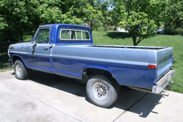 | 1972 4X4 Ford pickup truck. Great project tuck for someone. The drive-train is in good working order. The motor is a 390 big block and needs work but will start and run. The body is very solid with just one small rust spot over the windshield. I bought the truck with plans of restoring it myself and just have too many things going on. |