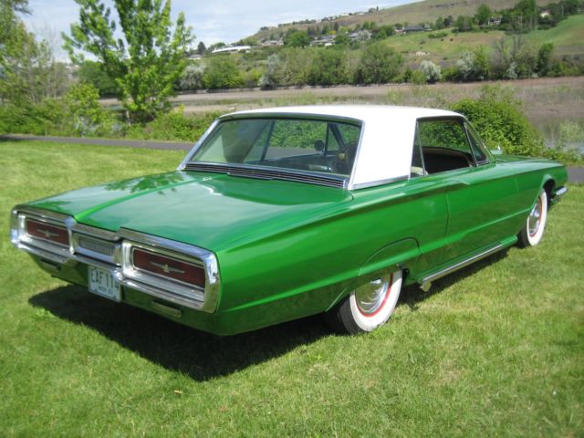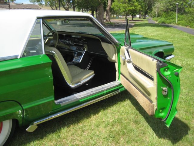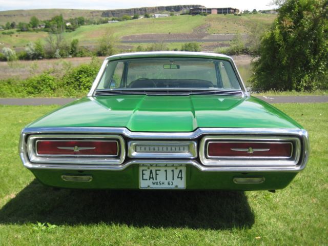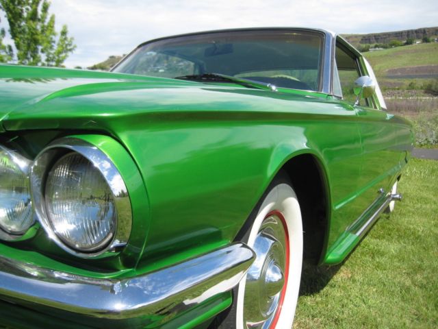 Up for auction is a Cool Custom T-Bird. This 1964 Bird has been customized and hasthe smooth look. The hood & trunk emblem's, roof side emblem's and all other emblem's have been removed. Door handles,were also removed and electric door with remote key fob openers wereinstalled. The trunk has a remote pull to open and custom side pipes have been incorporated into the lower body for that custom look. The hot lime green body with purl white top paint is very nice but therearea couple of very smallchips, one the hood by the hood air inlet and buy the gas door opener. (please look at pictures closely, hard to see)Also there is a small bubble at the front of one of the rear wheel well openings in front of the fender skirt. The car is very solid showing no rust except for the small bubbles. The under side of the car is the original and look great. Thisbird's 390 engine starts easy and runs good. It has a new Edelbrock carb, new voltage regulator andnew alternator. Transmission is strong and the car drives very nice. A new power brake buster & master cylinder have just been installed so brakes are very good. It running Coker wide white wall tires with custom hub caps. The interioris mostly original but new carpetingwas just installed. The trunk has a new trunk liner kit, and it all look good. This Thunderbird shows well and attracts attention every ware it goes.I'm listing this car for a friend's son, that is going to collage and needs to sale. I will take all questions to him.Buyer is responsible for shipping and all shipping costs. We will help with loading on our end and in anyway we can. For your questions please call Bill (208)750-0000