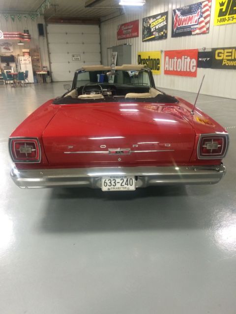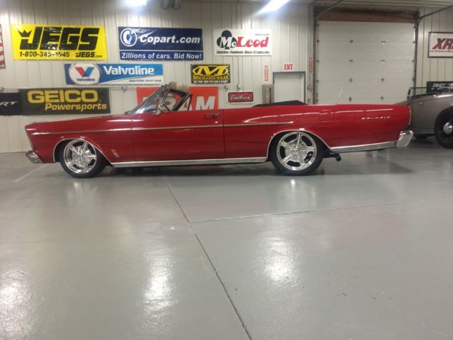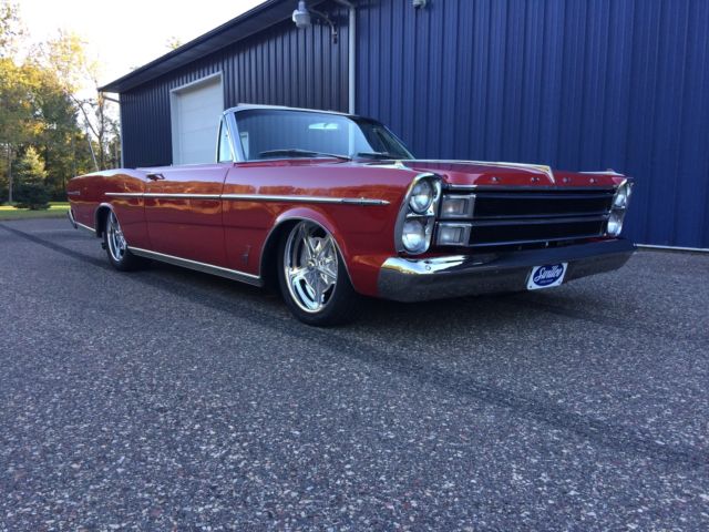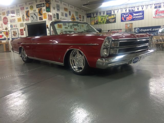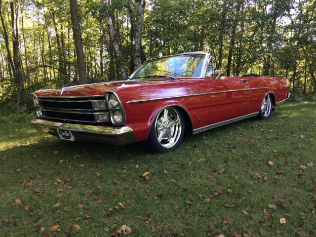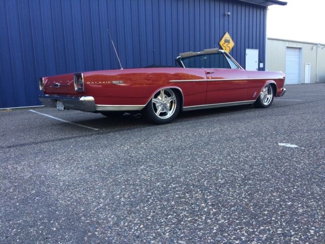 1966 Ford Galaxie 500 XL Convertible Bright red, black hertz cloth top and boot, parchment and black interior. 428 big block with color matched cobra aluminum valve covers Bucket seats and console with an automatic transmission for easy all day fun. All new front suspension with a serious attitude 18x7 up front with a 225/45/18's and at the business end a 19x8 with a wheelhouse full of 255/45/19's which makes for the perfect stance. Billet specialties wheels of course custom fitted, no off the shelf everyone else's wheels here. Brand new dual exhaust Odometer shows 105869 and runs as it should and stops as it should with all drum brakes. This vehicle is ready to drive off the lot. Nothing needs to be fixed. |