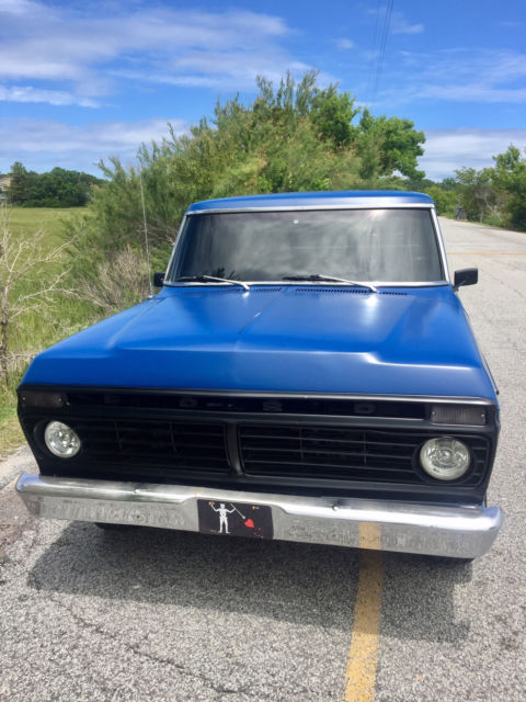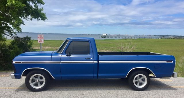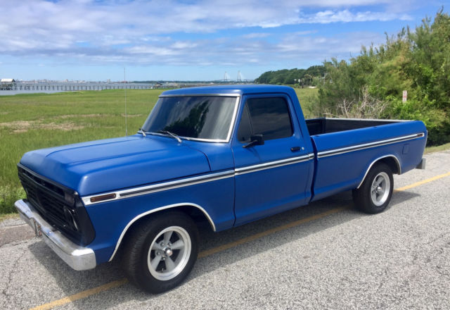 1974 Ford F-100 2WD V8 360cid for sale. This is my daily driver in/ around Charleston SC. I am in the military and just got orders overseas and I cannot take the vehicle with me so I am putting it up for sale in hopes someone else will take care of it. AC works but is not hooked up. This was my next project. Horn is not hooked up either but is functional. Right interior blinker arrow light works sometimes. Fuel gauge is 1970's accurate but not perfect. I have all paperwork for all work done since I have owned it to include new flat blue exterior paint, tinted windows, brakes, rims/ tires, alternator, battery, bluetooth stereo/ CD/ MP3 player and several other items. All the work has been done by a professional mechanic locally and he is available upon request if necessary. The mileage listed in the listing is not accurate. That is what shows on the odometer, but the clean title from the state of South Carolina states "0". The truck is a daily driver "20 footer". It can be a show truck if you want to add a little more money into it, or it can haul wood/ hay around your farm. Either way, it is a very clean and dependable truck. It also comes with a complete set (4) of Kumho tires and chrome American Eagle rims already mounted and balanced as well as the tires and wheels pictured. Please email me if you have any questions. I am not a Ford F-100 Jedi level master of knowledge, so I apologize in advance if I do not know your technical questions. But what I do know, is I turn the key, the engine starts, and it is a very fun, fast and dependable 1974 Ford F-100. Thank you for looking. |