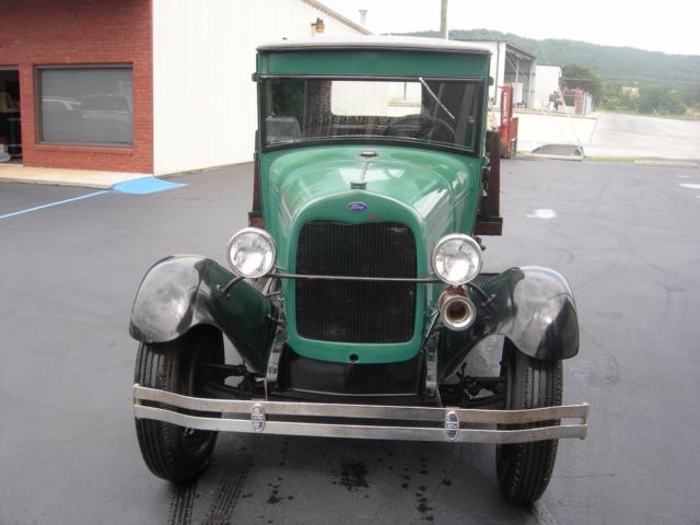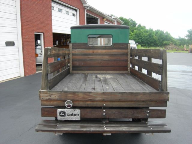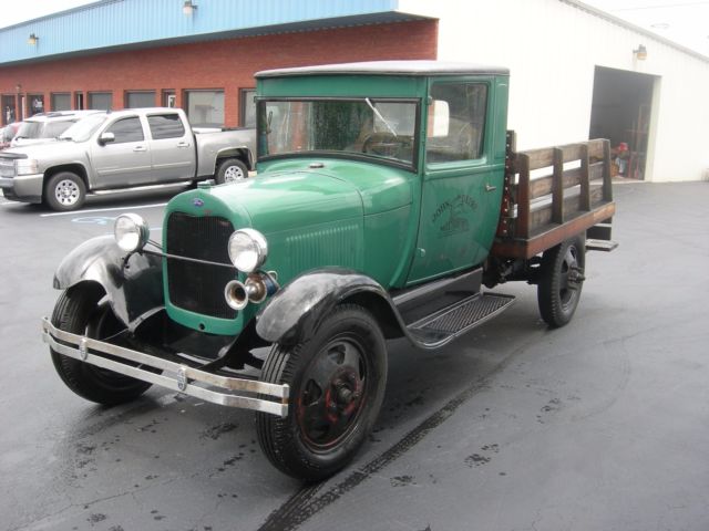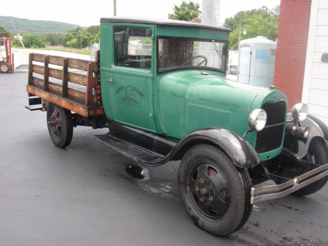 1929/30 Ford AA truck, this truck has the 29 radiator, 30/31 gas tank, 4 speed transmission, wood flat bed with side boards, Bud wheels, truck cranks and runs. This truck was used at a John Deere dealer and still has the John Deere sign on both doors. The door glass is cracked on both doors, the windshield and rear glass is good. Included with sale is a pair of original headlight buckets, door stop straps and a truck mirror. Located in Oxford, Alabama, sold as is, where is, with buyer responsible for shipping. Truck is for sale local, therefore I reserve the right to end auction at any time. Call 256-310-6463 for additional pictures or info