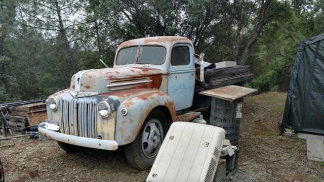 | Has clear title and is registered as a 1942 commercial truck. We believe this is an F6 (2 ton) because of the 2 speed rear end. May be an F5, but I have learned that only the F6 had a 2 speed rear end. Was running when parked. Has 327 Chevy with 4 speed trans and original 2-speed rear end. No rot on the body. Surprisingly good condition overall. Located in Placerville, CA. |