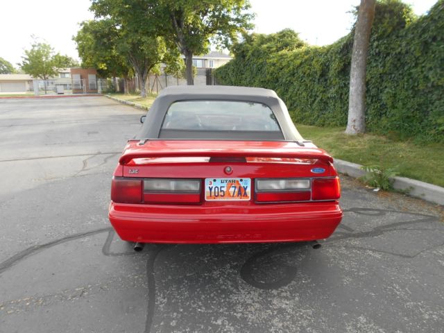 | THIS IS A NICE 1992 MUSTANG CONVERTIBLE WITH 69K MILES. I HAVE OWNED THIS CONVERTIBLE FOR 20 YEARS. IT WAS ONLY DRIVEN SLIGHTLY IN SUMMER. THE REAR AXEL HAS BEEN UPGRADED TO 3.55 GEAR RATIO. THE REAR END HAS ALSO BEEN UPGRADED TO THE LINCOLN DISC BREAKING SYSTEM. FRONT A ARMS AND SPINDLES WERE ALSO UPGRADED TO NEWER 5 LUG WHEELS WITH DISC BREAKS SO FRONT AND REAR ARE BOTH THE SAME 5 LUG PATTERENS. THE WHEELS ARE GERMAN AZEV WHEELS. THE LUGGAGE RACK ON THE REAR DECK LID WAS UPGRADED TO A WING. RUNS AND DRIVES GOOD. IF YOU HAVE QUESTIONS PLEASE CALL 801-918-7191. THIS CAR ALSO LISTED LOCALLY. THANKS FOR LOOKING! |