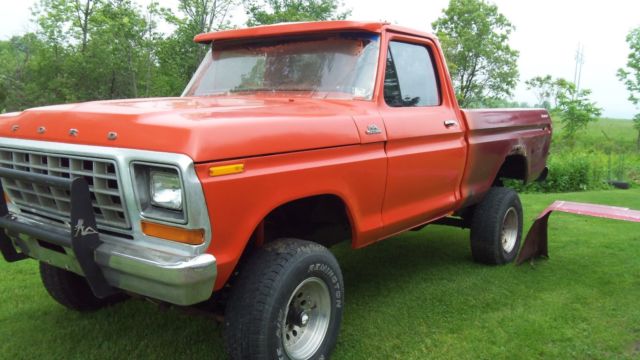 1979 FORD F-150 SHORT BOX PICK UP. This truck will need to be finished small things. The good : Truck has been taken down and chassis has been sand blasted and painted. The cab has new floors, cab corners, cab mounts, new fenders, and doors. The engine is a 351 M engine runs great !!!, C-6 transmission shifts as it should !!!. Truck runs and stops will need little to be road worthy as is will need to be flat beaded or towed. The 4x4 works great with no issues. Tires are 31 x 10.5 R-15 LT are in good condition. The gas tank, sending unit and lines are new . I have a clear N.Y. transferable title. What the truck needs is someone to finish it. I have boxes and boxes of parts all the parts to finish. Brakes need to be gone through, windshield need to be replaced (I have a good one),rare short box needs to be finished and painted (easy fix) I have the original bench seat needs to be reupholstered, bench seat is in truck now is not original. This truck need a lot of little things done nothing major. Please NO trades serious inquires only truck is sold as is.Truck is for sale locally and I reserve the right to end the auction at any time. Do not bid If you have less than 3 positive feedbacks or your bid will be canceled regardless what you bid.Please ask any and all questions before bidding. Truck is located in upstate New York just off the N.Y. State Thruway. My reserve price is low andpriced to sell. I WILL ONLY EXCEPT 500.00 IN MY PAY PAL ACCOUNT THE REST IN CASH WHEN PICKED UP.Thank You and Happy Bidding !!!!!!!!!!!!!!!!!!!!!!!!!!!!!!!!!!!!!!!!!!!!!!!!!!!!